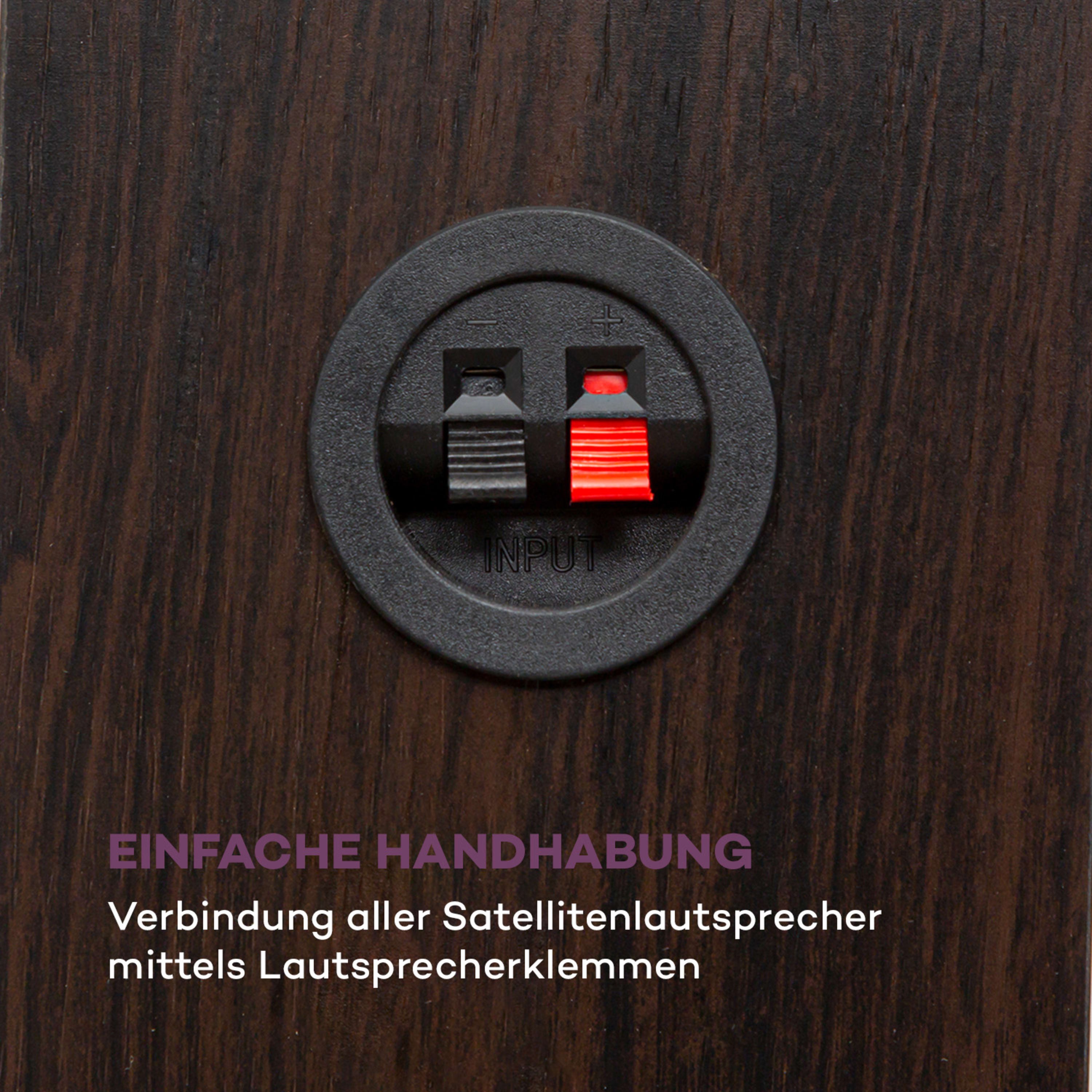 Vorab, das Soundsystem klingt absolut Hammer. Es übertrifft akustisch meine Erwartungen bei Weitem. Aber, und jetzt kommt meine Kritik... Das Thema Lautsprecheranschlüsse und Lautsprecherkabel müssen wir noch einmal ganz dringend überdenken. Die Klemmen an den Boxen sind derart klein, da passen keine vernünftigen Kabel rein. Ich hatte extra 2,5 mm² Kabel gekauft. Aber die sind leider zu dick. Himmel, die Boxen meiner HiFi Anlage sind mit 4mm² versorgt. Und bitte, was sollen die Chinch-Anschlüsse für die Boxen am Subwoofer??? Da gehören auch ordentliche Klemmen dran. Sicher, das kostet ein paar Cent mehr. Dafür könnte man sich aber diese hauchdünne Litze (Was ist das? Sind das 0.2 mm²?) sparen. Diese Zumutung von Drähtchen sind ohnehin für mindestens 3 Boxen zu kurz. Ansonsten wie gesagt, bin ich begeistert. Alles funktioniert, der Sound bekommt 5 Sterne und eine klare Kaufempfehlung und die Optik ist sehr schön. Die Verarbeitungsqualität ist auch sehr ok für den Preis. Das ganze kam äußerst ordentlich verpackt in 2 großen Kartons an und wurde vom DPD-Mitarbeiter ins Haus und dort in unsere Paketbox geliefert. Jetzt muss ich morgen nur noch gucken dass ich diese Drähtchen verlängert bekomme. Ach ja, diesmal nicht über Amazon gekauft sondern direkt im Online-Shop von AUNA.
