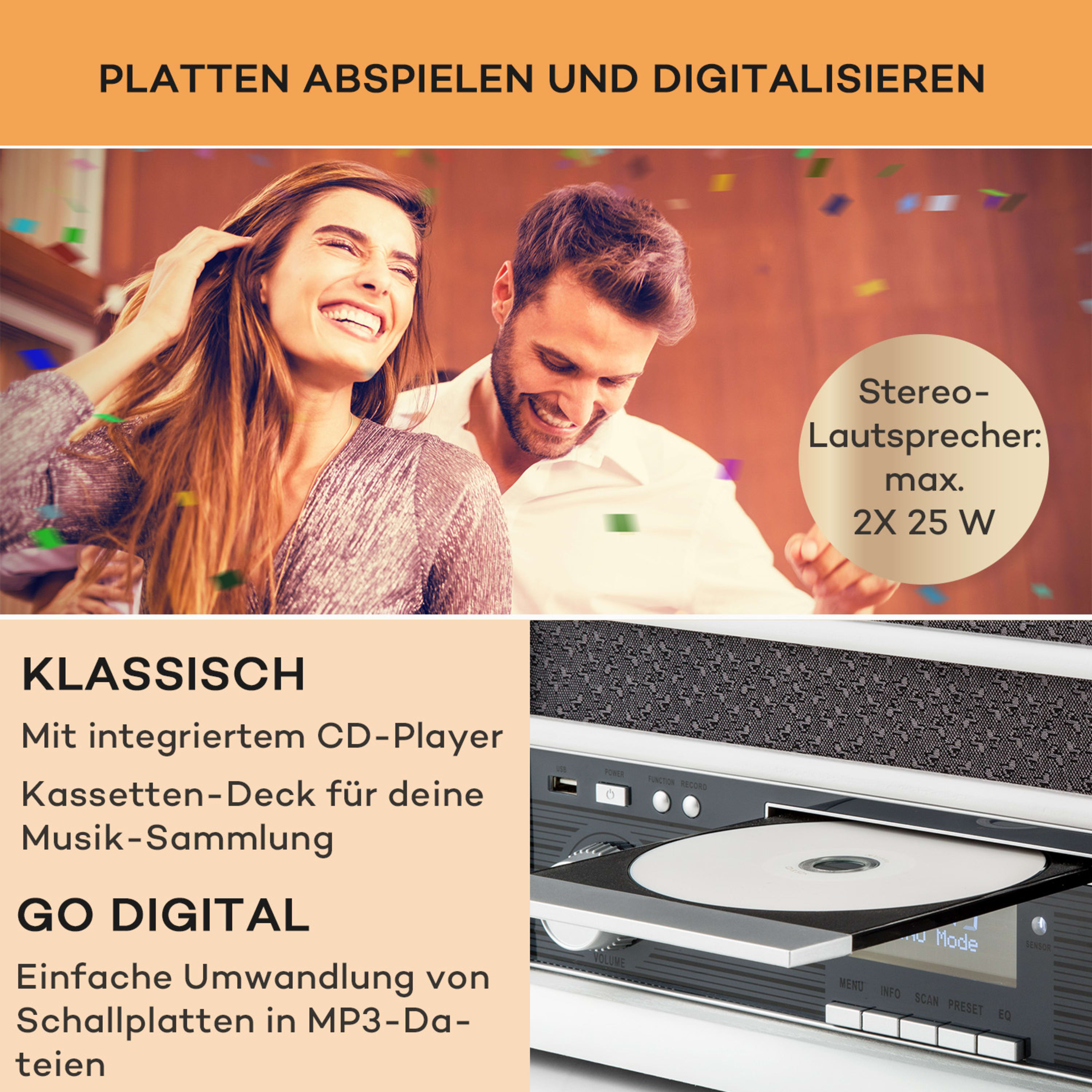 Omnipotent: Plattenspieler, DAB-Tuner, Radio-Tuner, CD-Player, Kassetten-Deck und USB-Slot