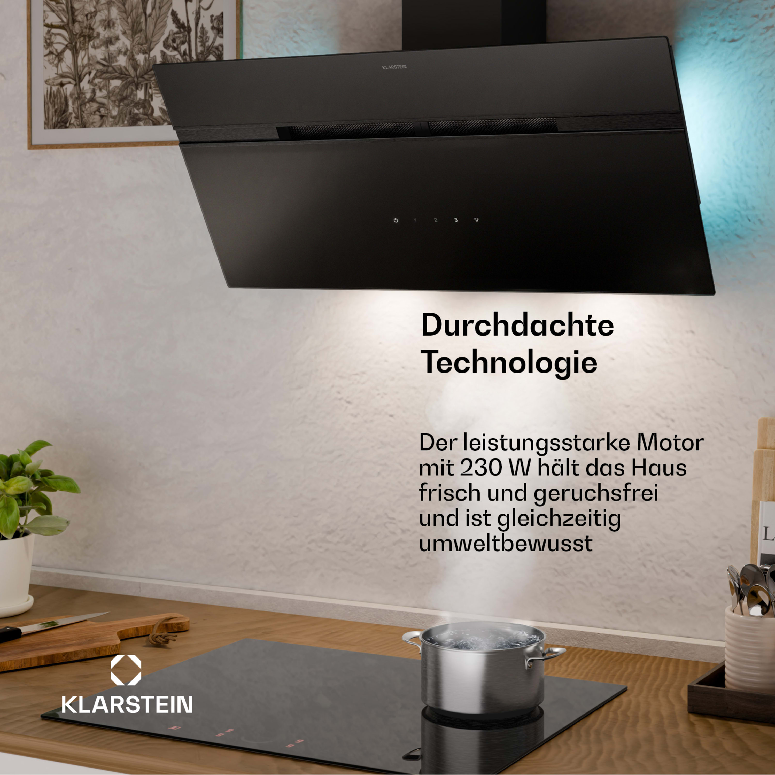 Edler Luxus und umweltfreundliche Leistung für die Küche: Mit der Klarstein Alina Dunstabzugshaube erhalten Kochfelder einen stimmungsvollen Glanzpunkt und Küchen klare Luft.