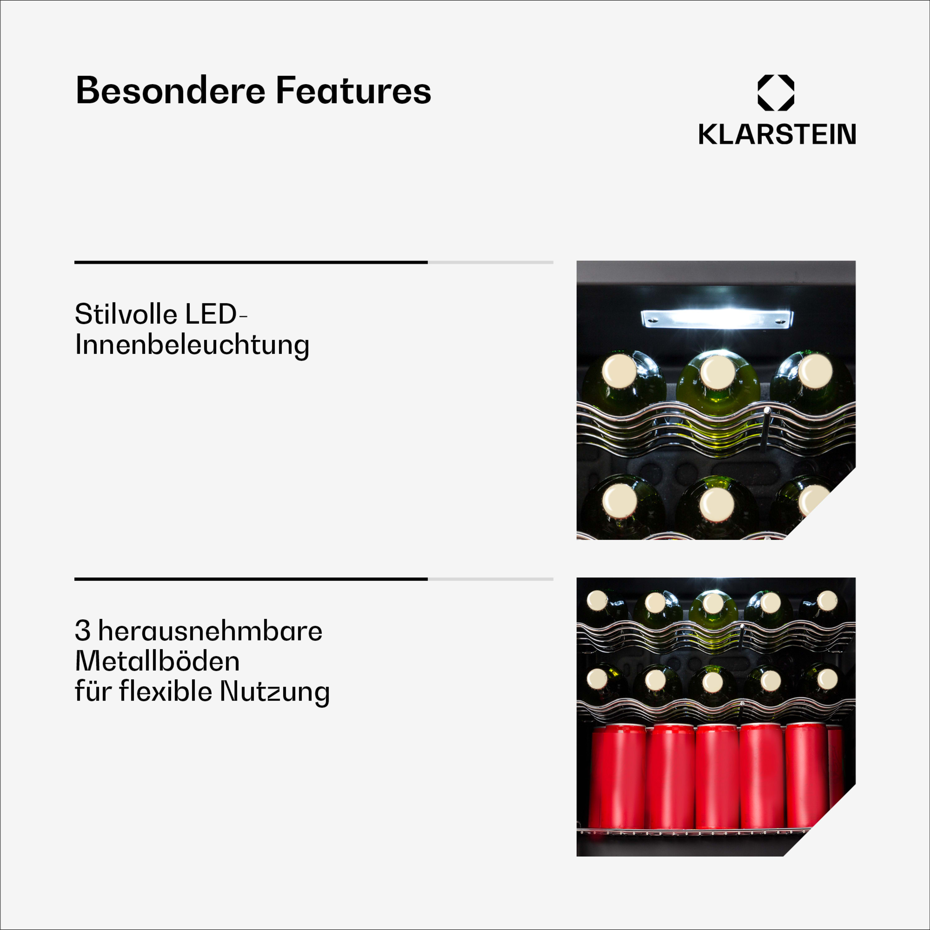 Kompakte Größe & viel Platz: 60 Liter Volumen und 3 Metalleinlegeböden bieten ausreichend Platz für Getränke und Snacks.