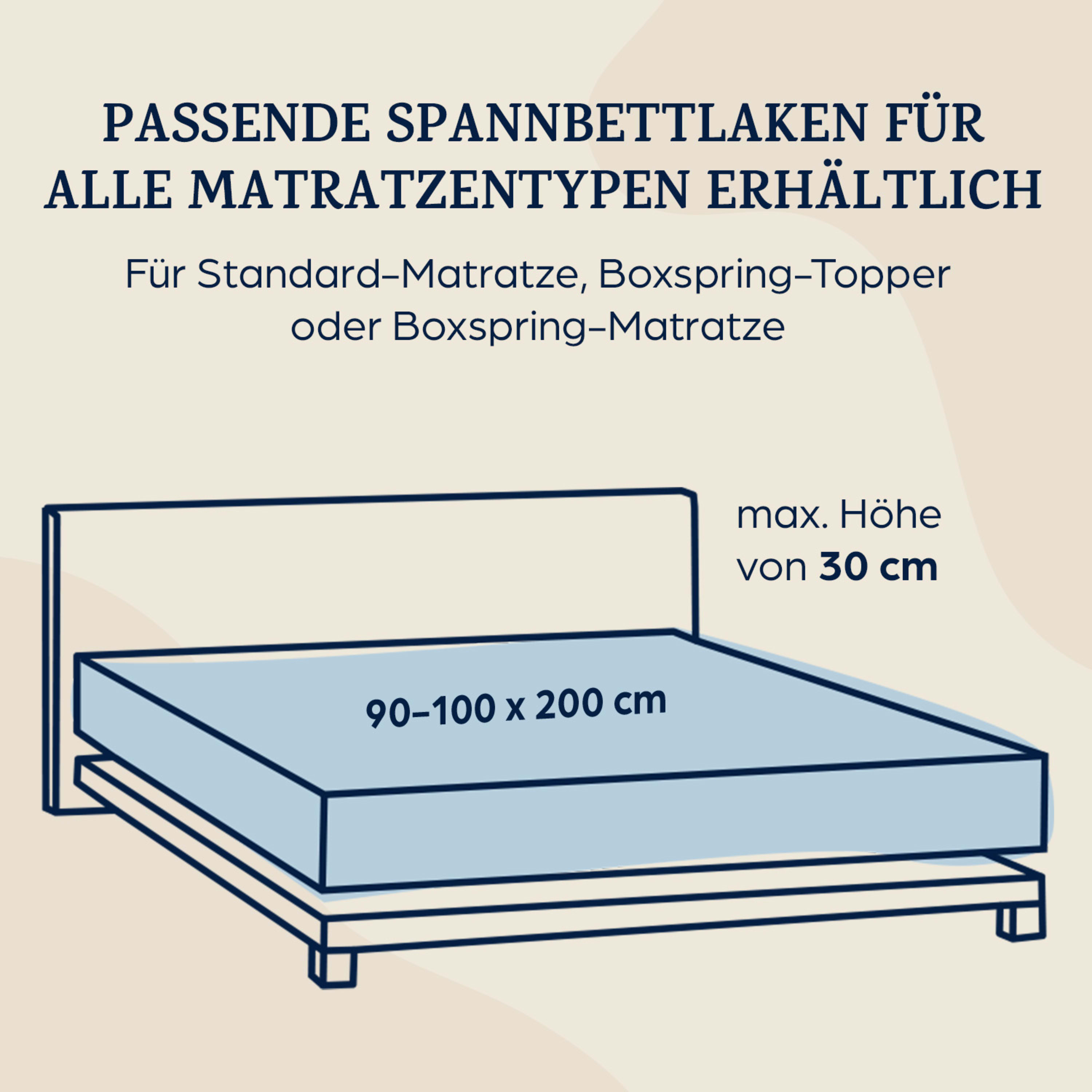 - Maße Spannbettlaken: ca. 90-100 x 200 cm (BxT)
