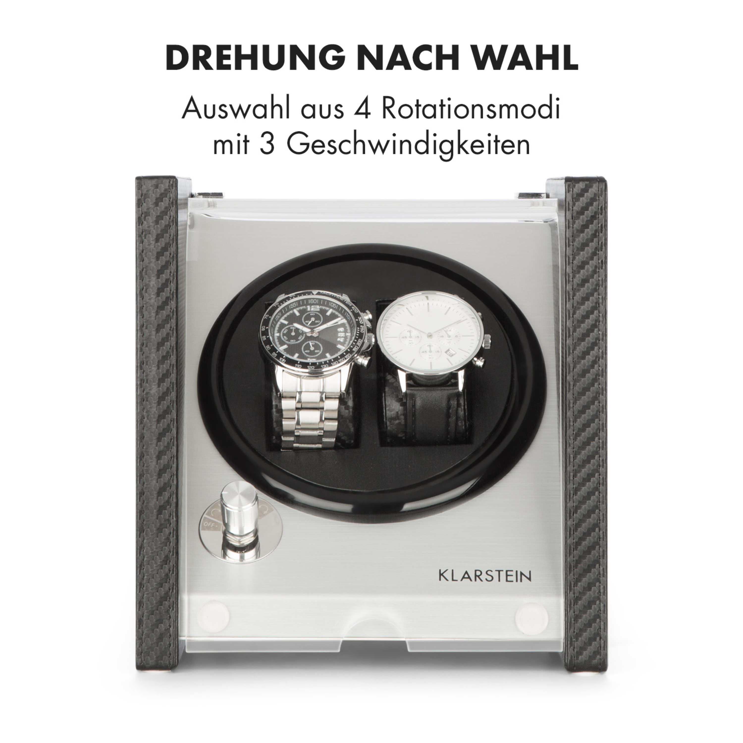 Im Gerät verwahrte Automatik-Uhren werden durch 4 Rotationsmodi und 3 unterschiedliche Geschwindigkeiten, die die Bewegung des Handgelenkes simulieren, fortdauernd aufgezogen. Die Drehung trägt zudem zur Pflege des Uhrwerks bei, indem dem Verharzen der Ölschmiere effektiv entgegengewirkt wird.