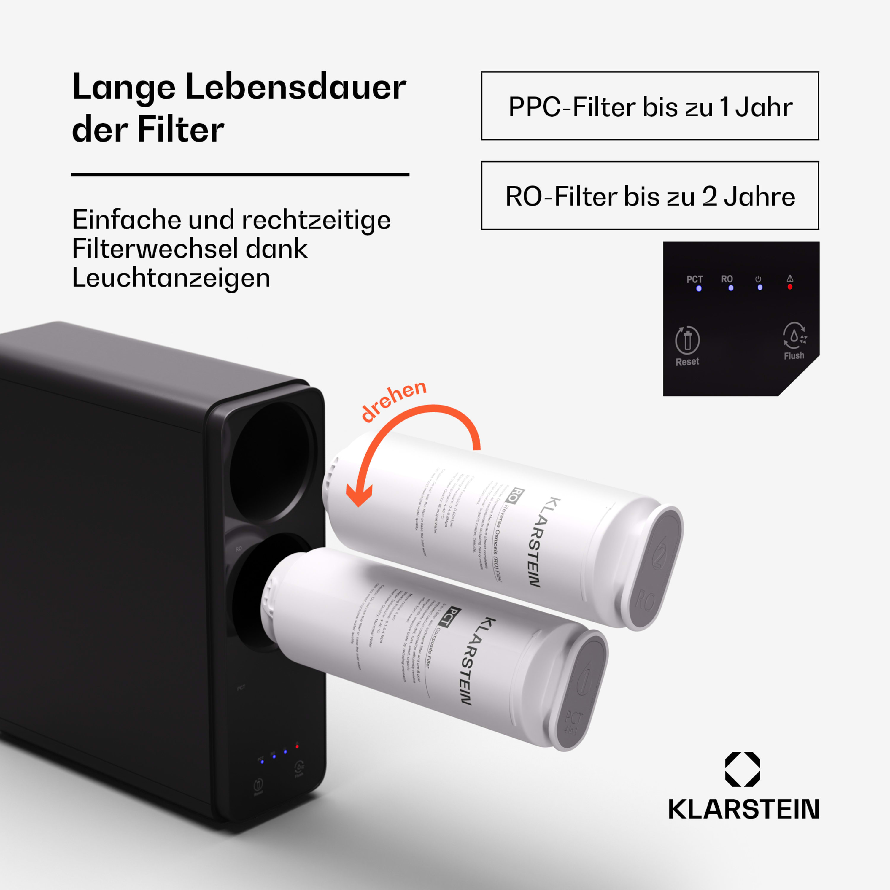 • Lebensdauer RO-Filter: bis 24 Monate