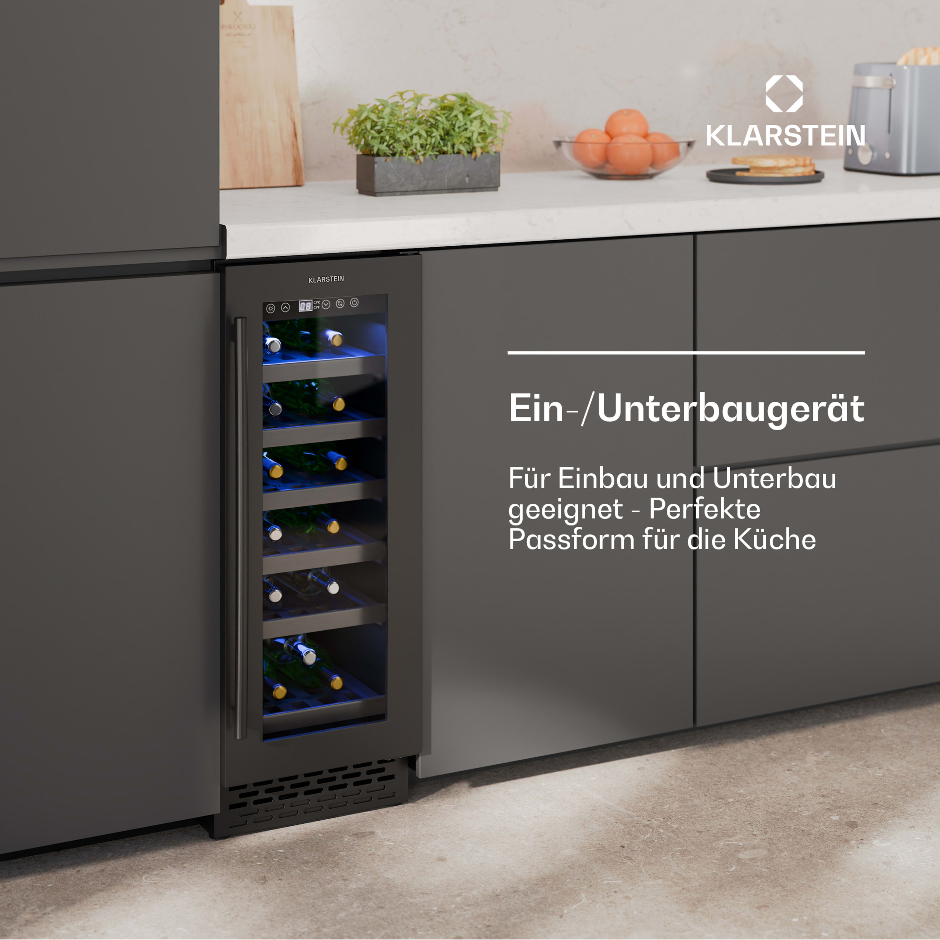 Gönnen Sie Ihren Weinen die perfekte Lagerung und setzen Sie ein stilvolles Highlight in Ihrer Küche – mit dem Klarstein Weinkühlschrank Vinovilla 18 Uno!