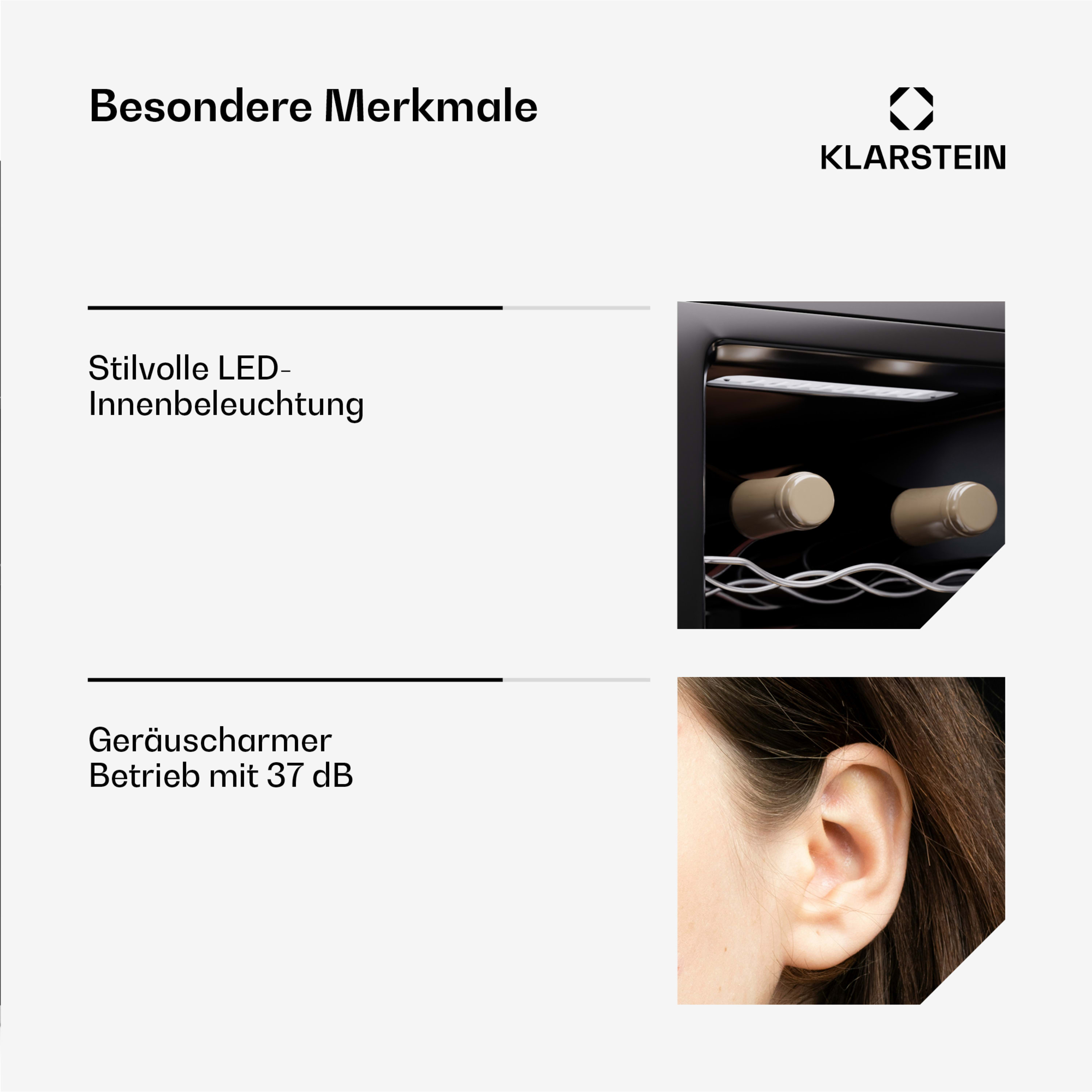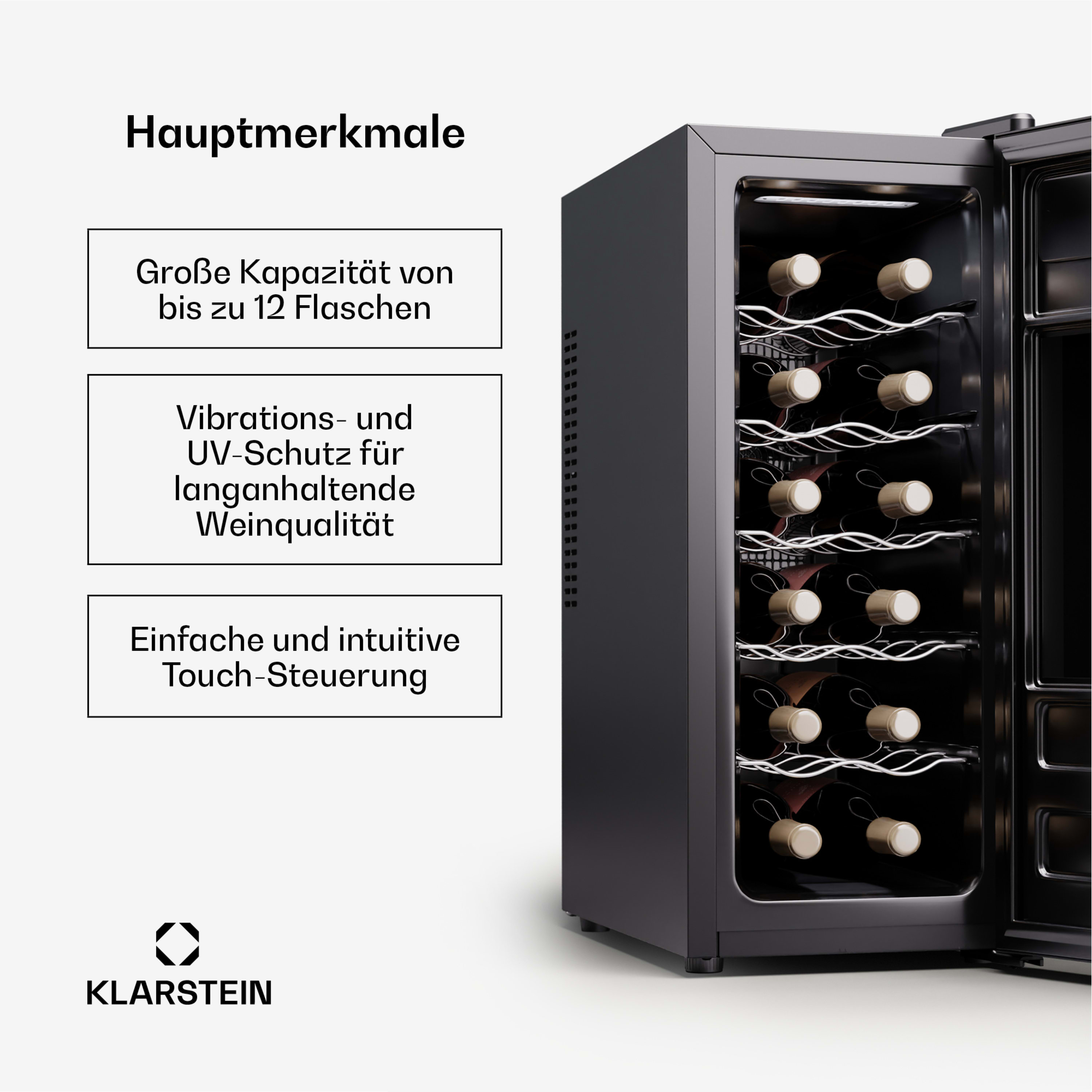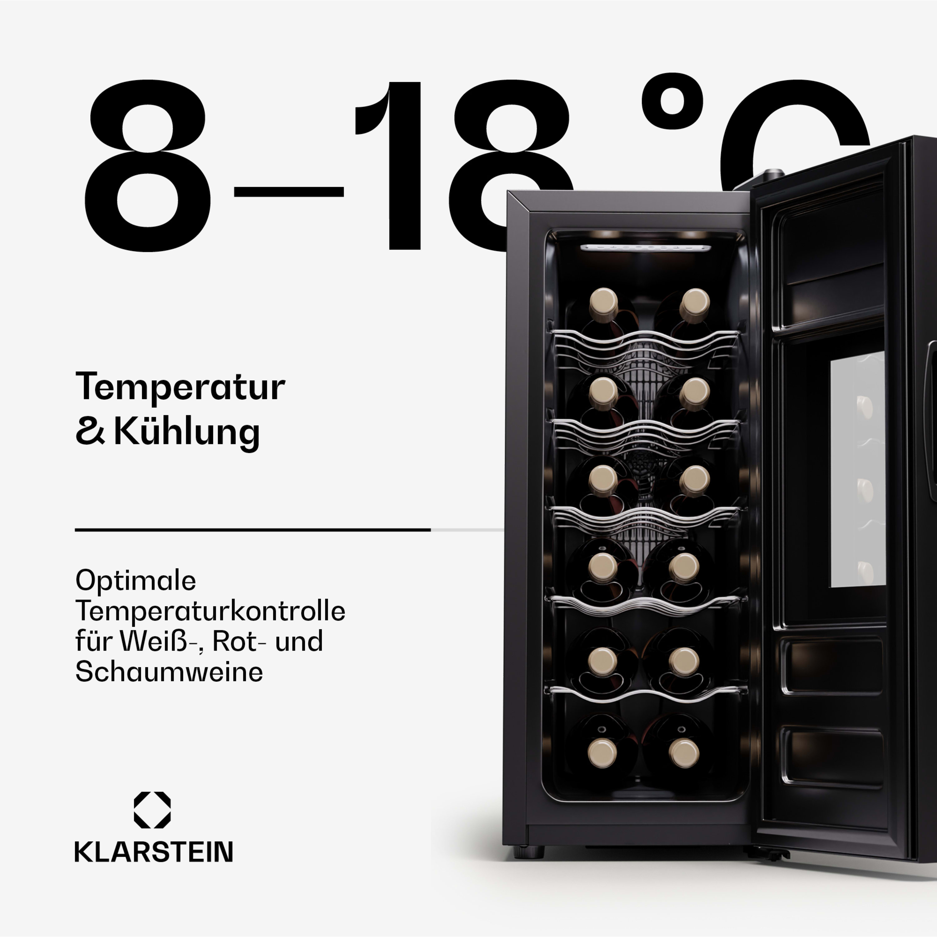 Aus dem stilvollen Klarstein Silent Vino 12 Uno Slim Weinkühlschrank schmecken die edlen Tropfen ganz besonders gut, denn hier haben sie nicht nur stets die richtige Kühltemperatur für den sofortigen Genuss, sondern werden auch elegant in Szene gesetzt.