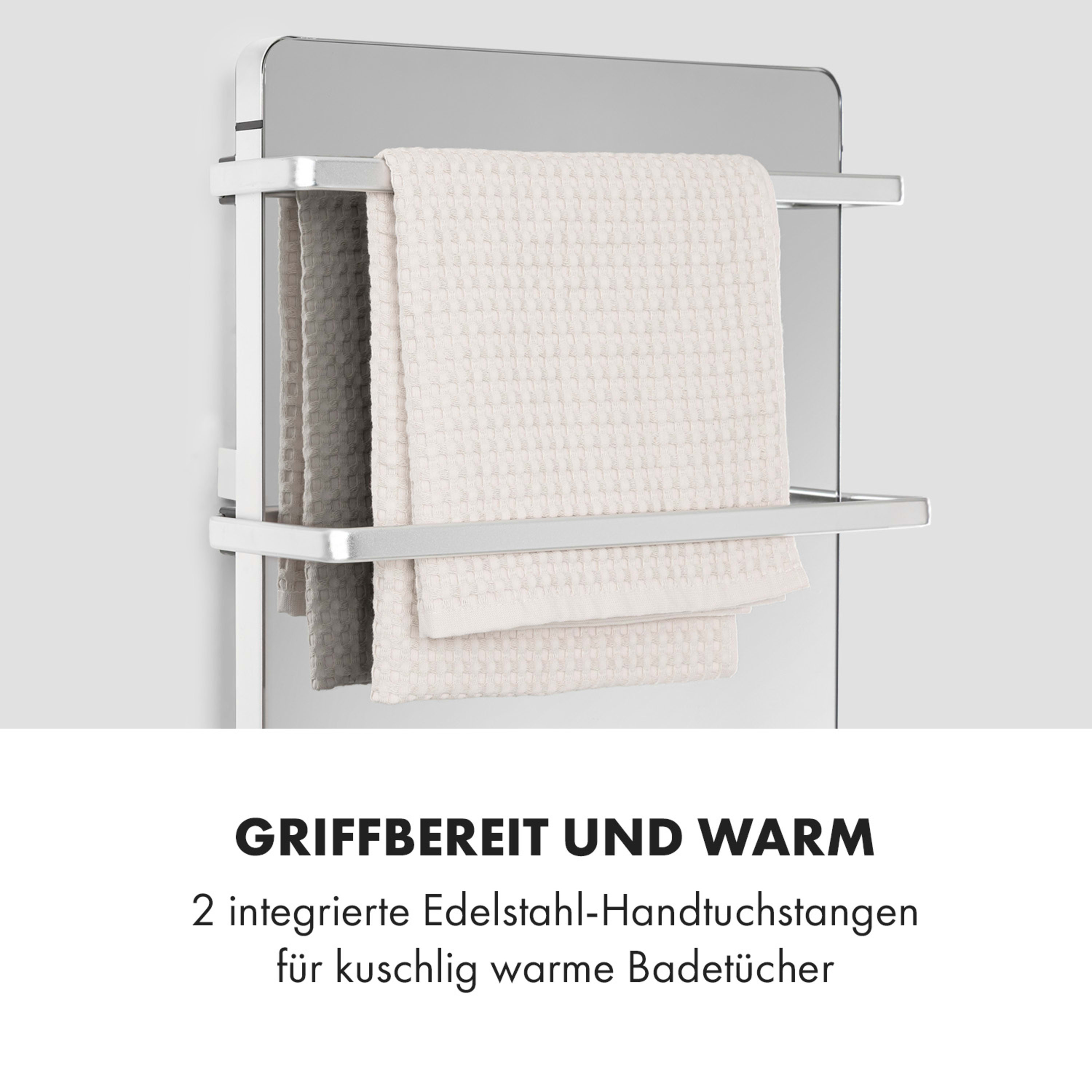 Griffbereite Handtücher: 2 integrierte Edelstahl-Handtuchstangen