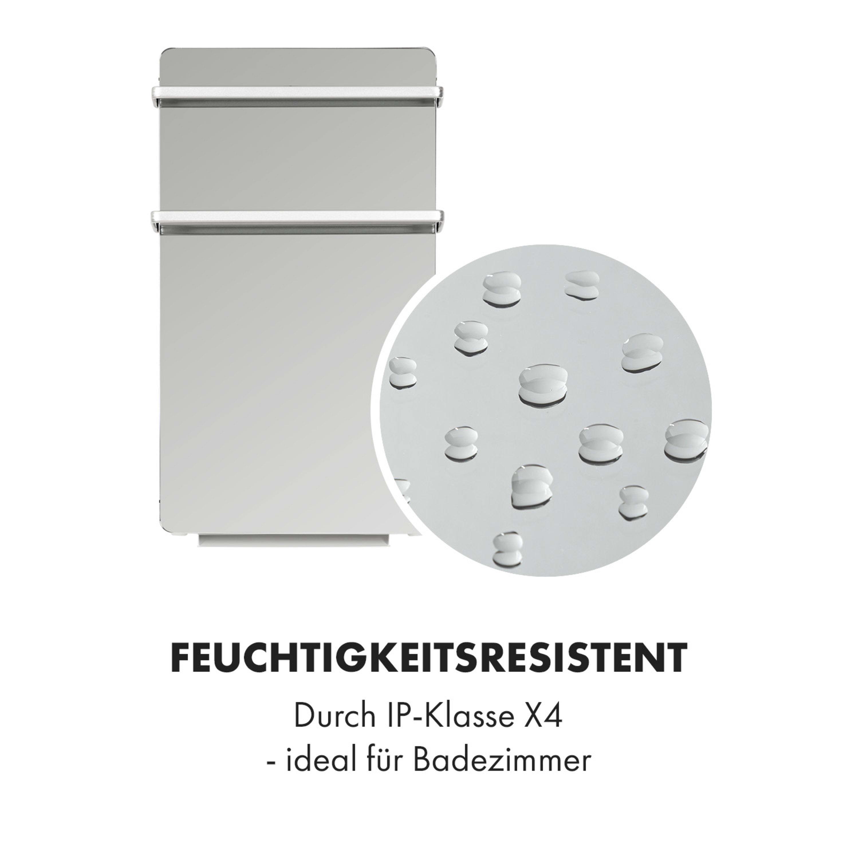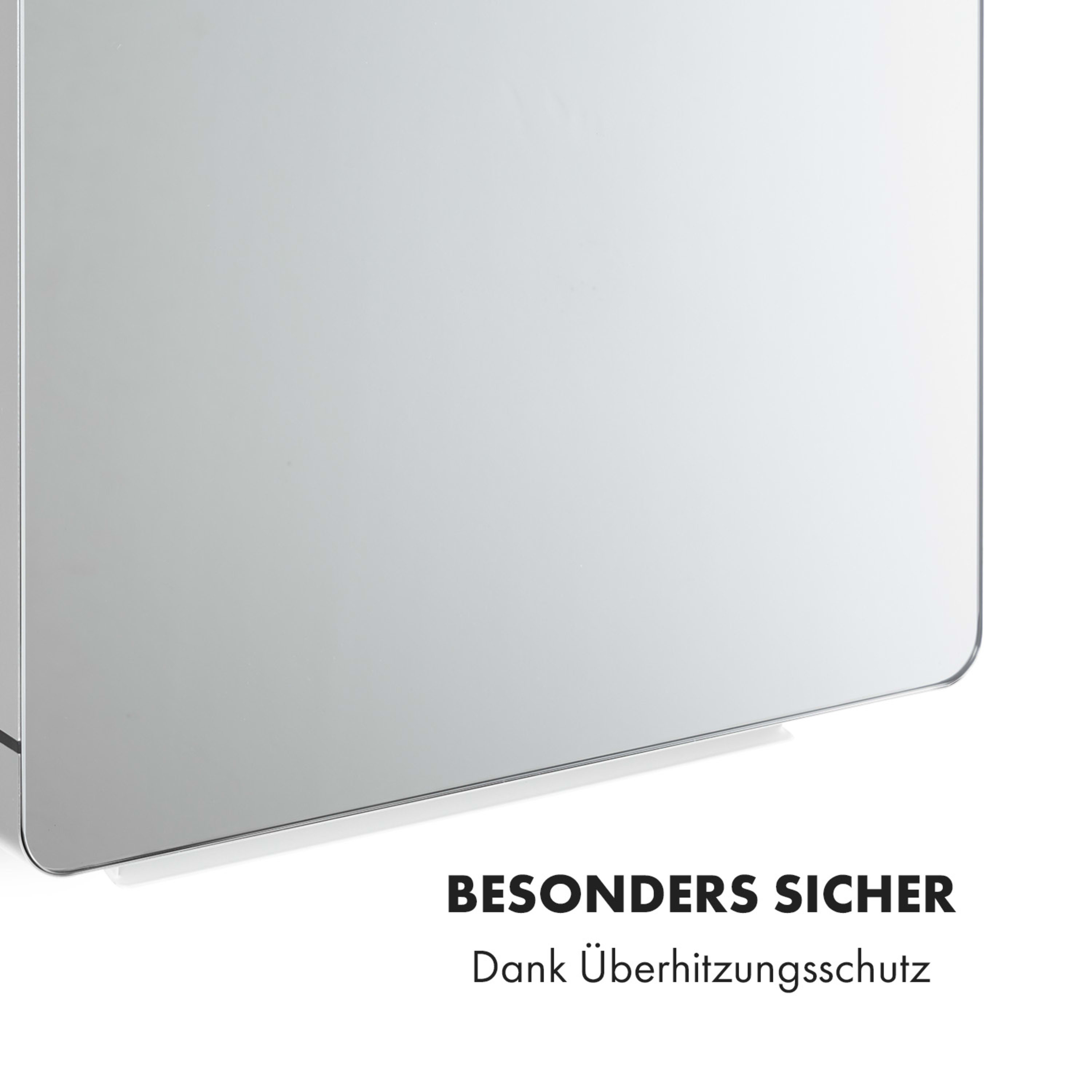 Mit Wohlfühlwärme zu purer Entspannung: Das Klarstein Hot Spot Crystal FlowHeizpanel bringt hocheffizient und platzsparend angenehme Wärme in dein Bad. Dabei versorgt es dich stets mit kuschelig warmen, trockenen Handtüchern. Die Klarstein Hot Spot Crystal Flow Wandheizung revolutioniert die Beheizung mit einer modernen Kombination aus PTC- und Infrarot-Technik. Während das PTC-Heizgerät mit zwei Leistungsstufen bei 1100 oder 1800 Watt die Luft im Bad erwärmt, sorgt ein 200 Watt starkes Infrarot-Heizelement für kuschelige Handtücher und ein angenehm warmes Gefühl auf der Haut. Doch nicht nur in Sachen Technik glänzt der Klarstein Hot Spot Crystal Flow Heizstrahler, er weiß auch mit seinem stilvollen Design zu überzeugen. Seine abgerundete Oberfläche ist komplett mit einer hitzebeständigen Spiegelfläche überzogen, die jedem Badezimmer einen Hauch von Luxus verleiht.