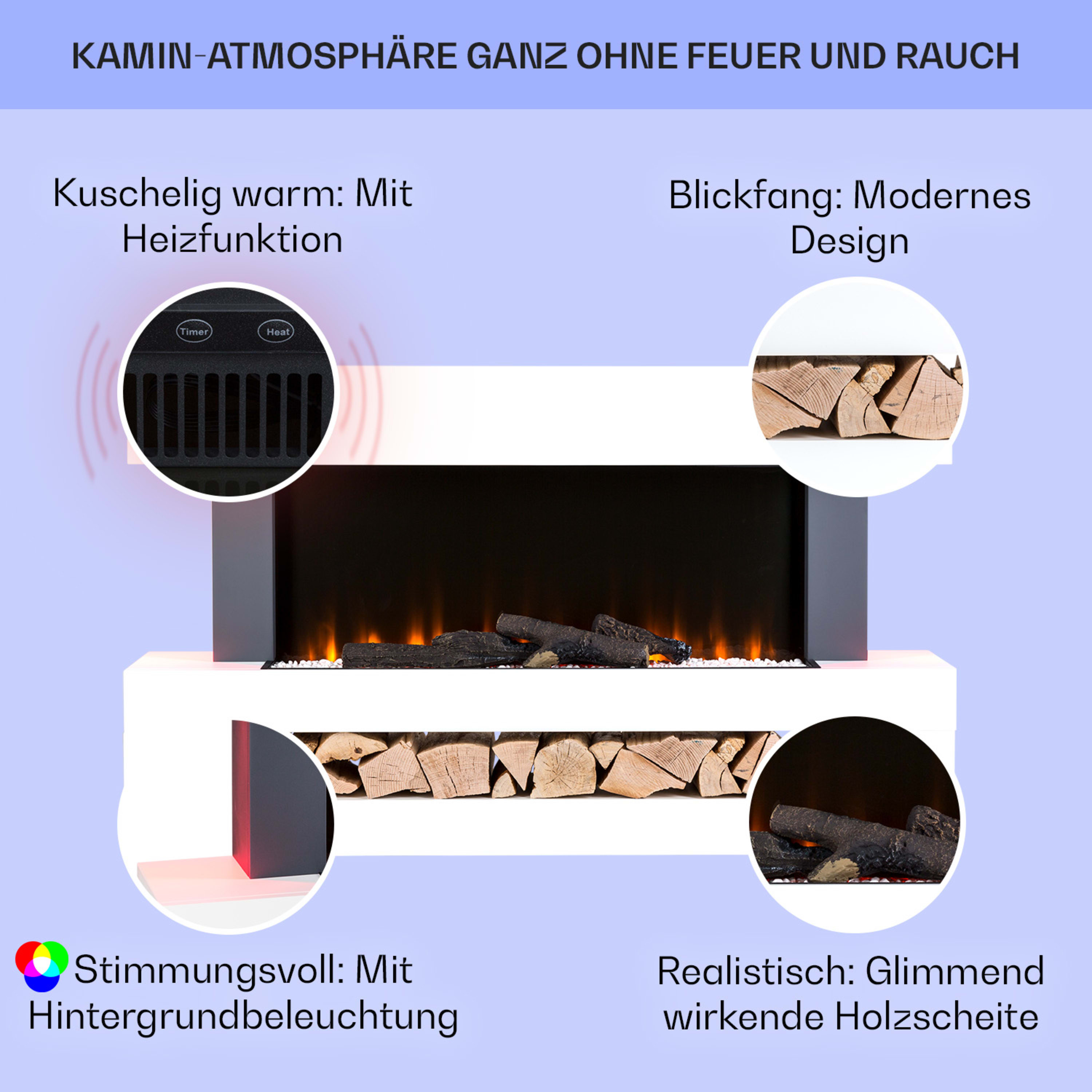 Studio LightFire Smart 2000W 121cm Elektrokamin mit Kaminsims Weiß