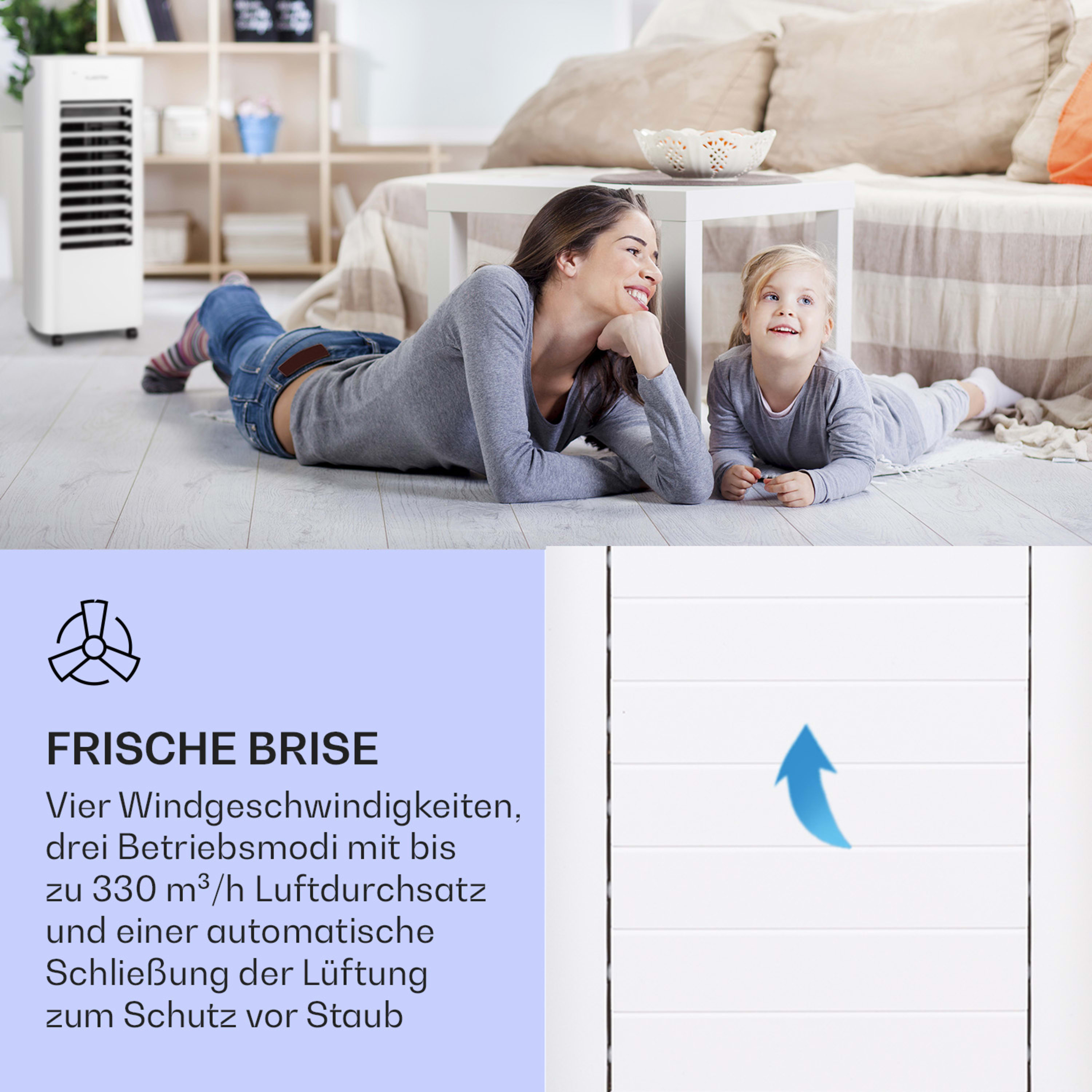 Dank der Eiswürfel wird schonend gekühlte Luft verströmt. Da es sich lediglich um einen Ventilator und nicht um eine Klimaanlage handelt, müssen Sie sich in der Nähe aufhalten, um davon zu profitieren. Bewegen Sie sich vorsichtig, wenn sich Wasser im Tank befindet. Für ältere Menschen = perfekt.