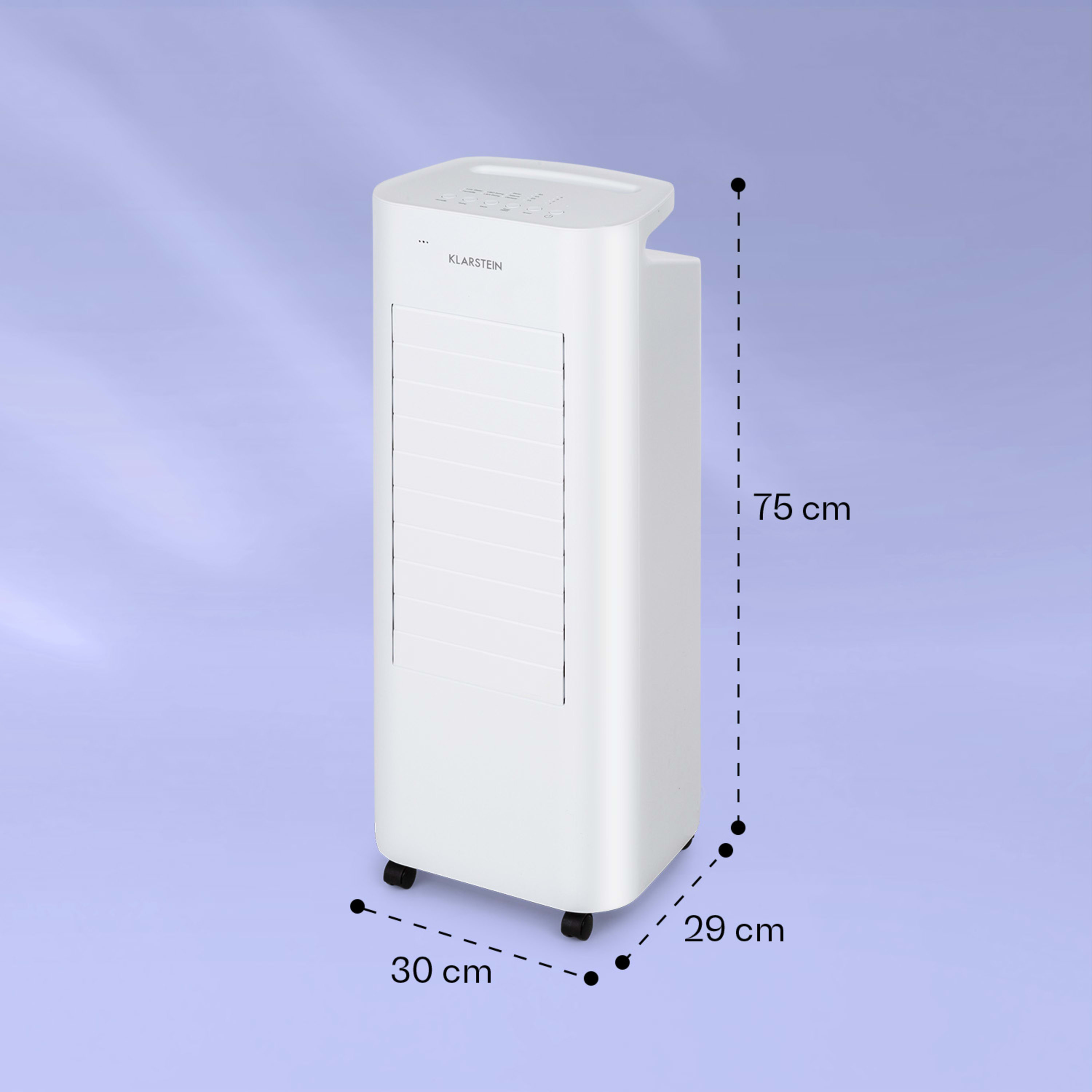 Ich habe es meiner Tochter geschenkt. Es hat eine geringe Stellfläche und ist mit Rädern für eine einfache Bewegung ausgestattet. Es ist mit zwei Tabletts ausgestattet, die vor der Verwendung in den Gefrierschrank gestellt werden müssen. Anschließend in der Wasserschale platziert, erfrischen sie ein mittelgroßes Schlafzimmer angenehm und geräuschlos. Leider wurde es ohne Bedienungsanleitung geliefert, diese kann aber online gefunden werden und es gibt auch ein Tutorial, das Ihnen bei der Verwendung hilft. Bei normaler Hitze ist es nützlich und erleichtert den Schlaf, wenn es im Schlafzimmer aufgestellt wird und immer noch ein Luftkühler und kein CDZ ist.