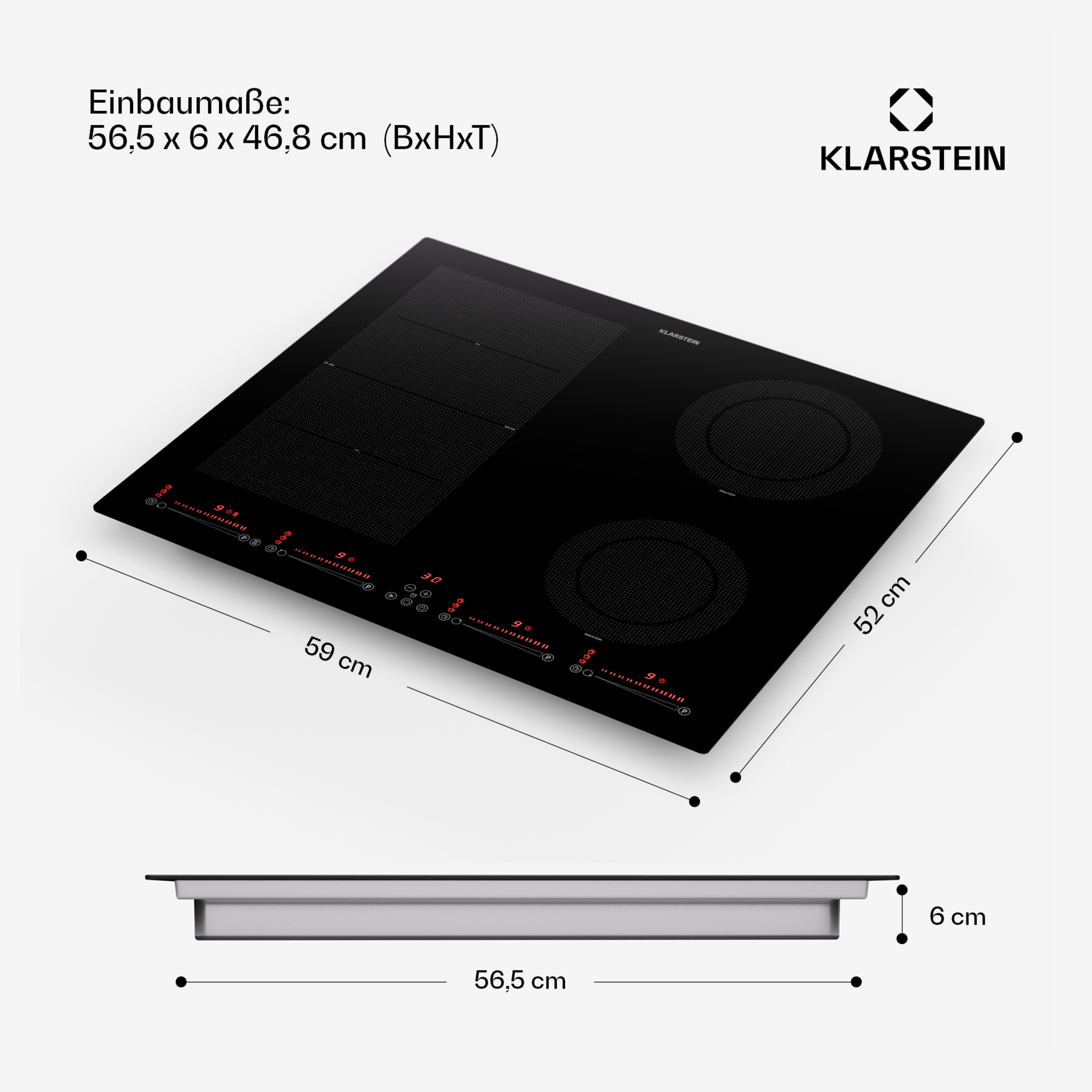 Mit insgesamt vier Kochzonen und einer Gesamtleistung von 7000 Watt bietet das Kochfeld vielseitige Kochmöglichkeiten. Die glatte Glaskeramikoberfläche ist leicht zu reinigen, und Sicherheitsfunktionen wie Überhitzungsschutz und Abschaltautomatik gewährleisten sicheres Kochen. Die Simmer-Funktion eignet sich ideal für kontinuierliches Köcheln bei niedriger Temperatur, perfekt zum Schmoren oder Schmelzen. Das Slider-Touch-Control-Panel mit 9600 Watt Leistung und Boost-Funktion ermöglicht eine präzise Temperaturregelung.