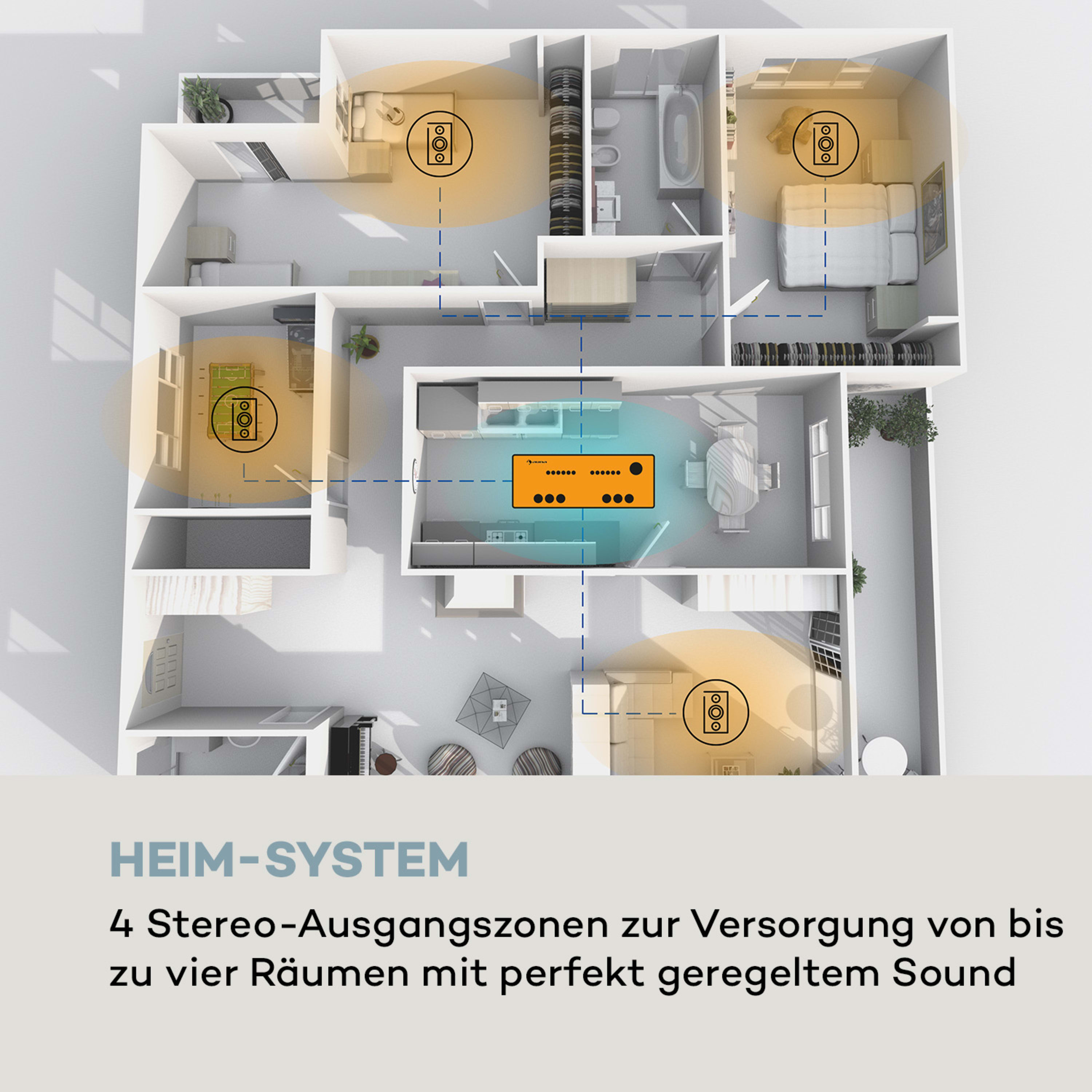 Kompakt, leistungsstark und vielseitig: Mit dem auna AMP-CD950 DG Multikanal-Verstärker erhält die Heimanlage ihre Klangoptimierung in bis zu vier Räumen.
