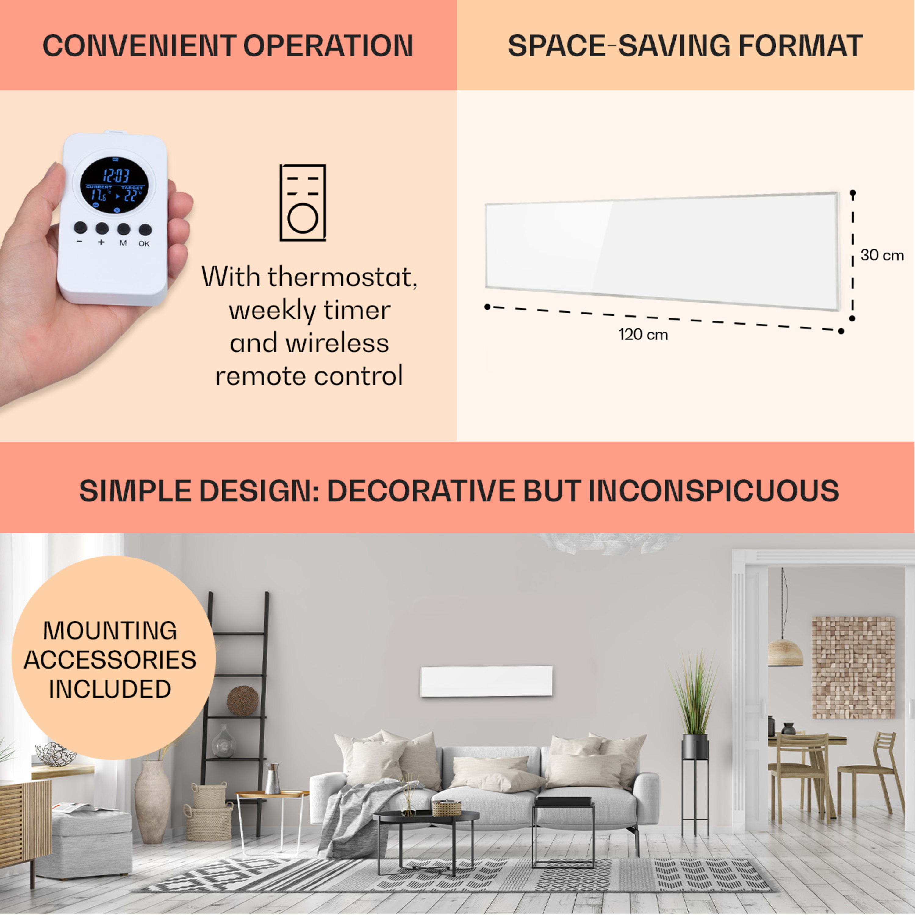 Wonderwall 360W 119,5x29,5cm Panneau Rayonnant Infrarouge Blanc