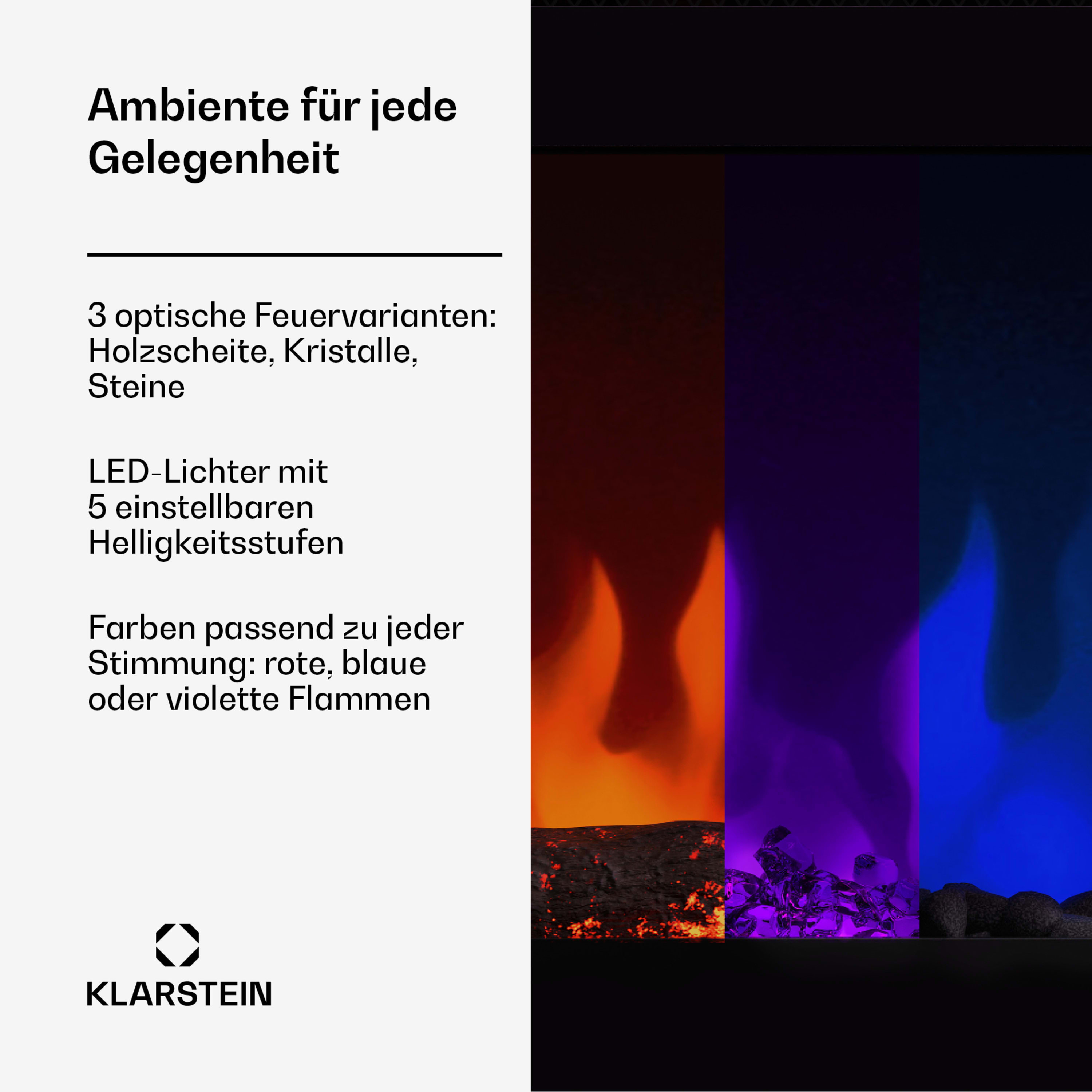Une chaleur agréable et des flammes vacillantes sans fumée ni cendres - la cheminée électrique Klarstein Galeras Smart apporte confort et romantisme dans le salon, le couloir ou la chambre à coucher.