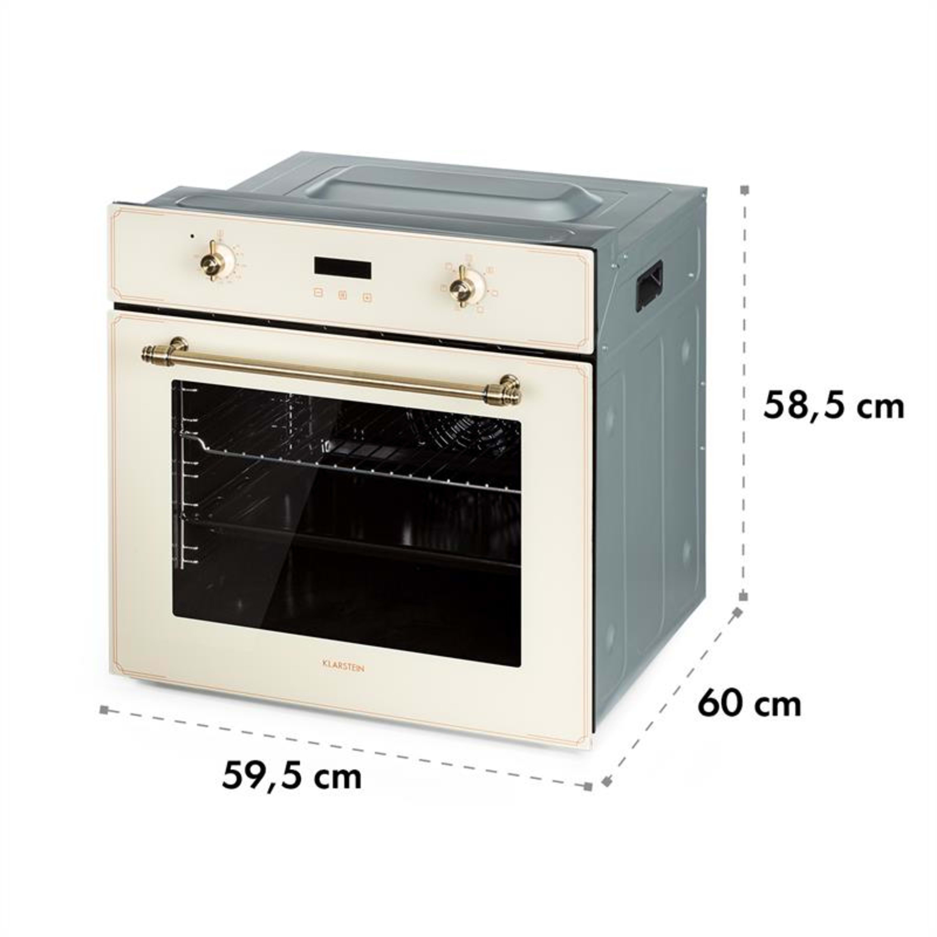 Place au luxe : le four encastré Klarstein Elizabeth allie le charme visuel du 19e à la technologie moderne du 21e siècle pour enchanter votre cuisine.