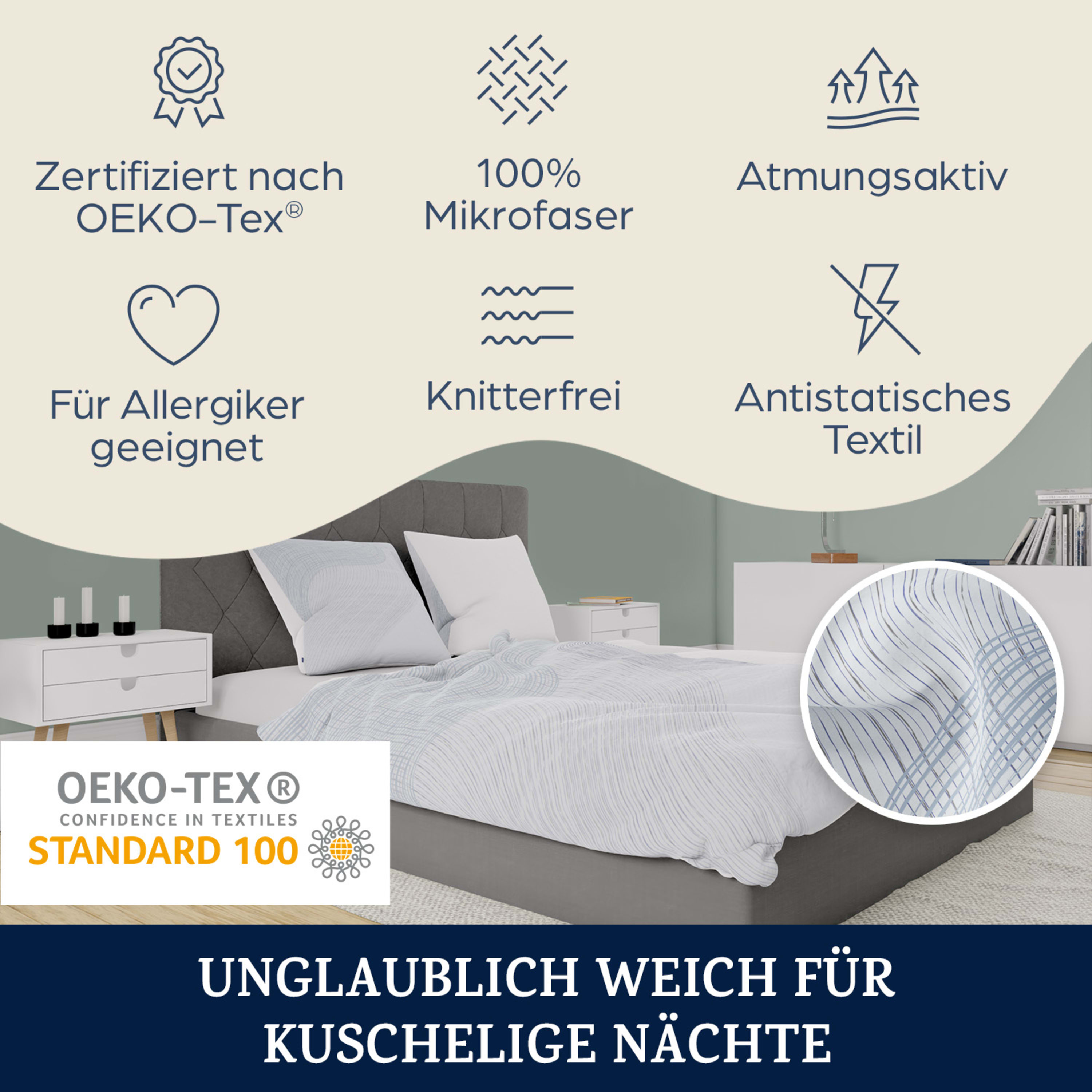 Avec fermeture à glissière & facile d'entretien : Lavage de 40 à 90 °C sans adoucissant - idéal pour les allergiques