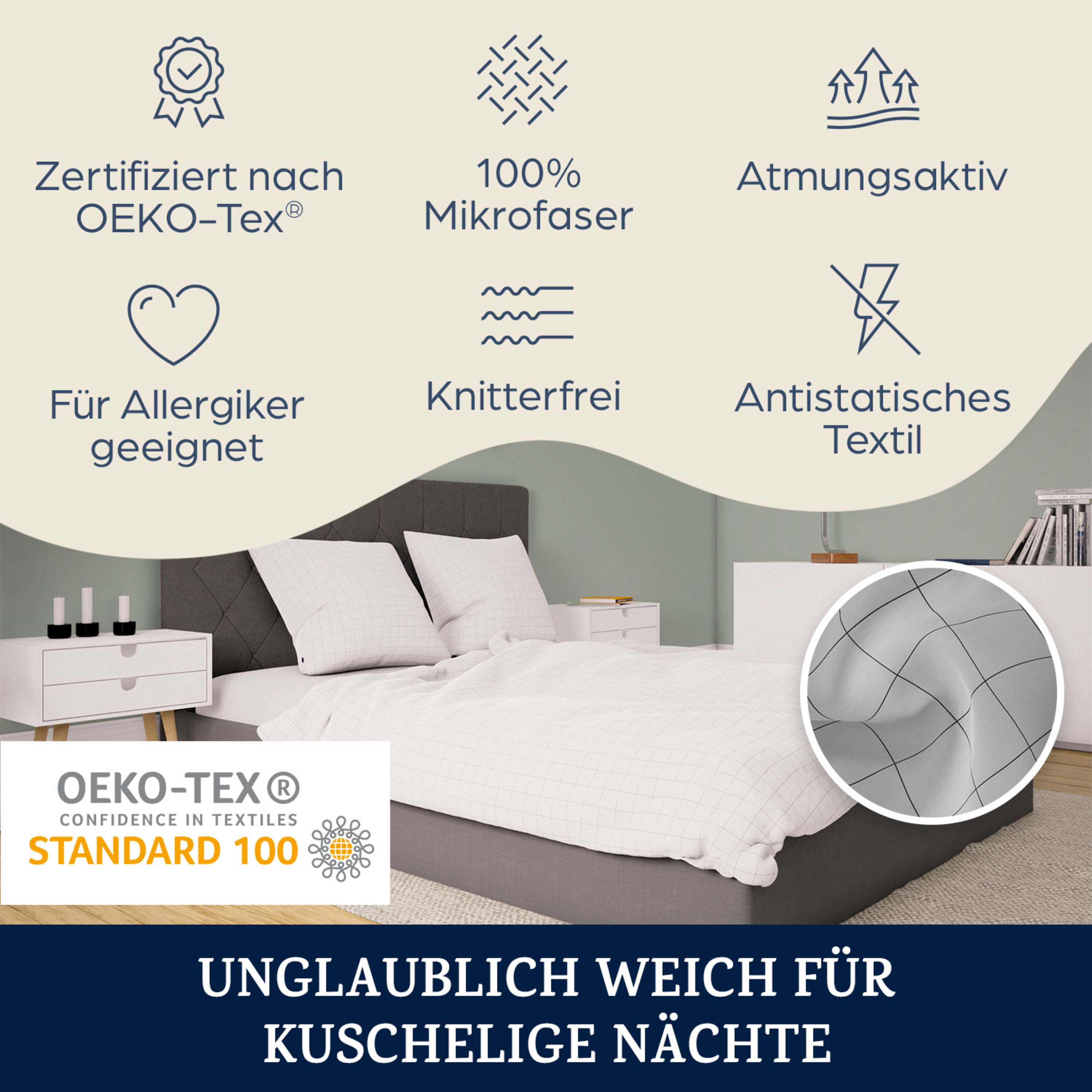 Hält was es verspricht und ist zudem noch günstig (Preisangebot lag bei 21,24€) Ich beziehe mich hier auf den Einkauf dieser Bettwäsche für einen Kaufpreis von 21,24€ in der Farbe "Light Grey" . Die Bettwäsche komm in einem festen , quadratischen Karton und die Wäsche selber ist dann nochmal sauber und ordentlich in einem "Plastikbeutel" mit Reiß-Verschluss verpackt . Negative Gerüche oder heraushängende Fäden waren bei mir nicht vorhanden . Gewaschen habe ich die Wäsche nicht , sondern habe sie sofort bezogen , sodass ich zunächst nicht weiß , wie sich der Stoff gegenüber "Falten" verhält , wenn sie aus der Waschmaschine kommt ️ Bezüglich der Weichheit kann ich persönlich sagen , das sich die Wäsche sehr angenehm auf der Haut anfühlt . Ich persönlich bevorzuge den Schlaf komplett ohne Kleidung , sodass ich die Weichheit gut einschätzen kann Knitterfrei ist die Wäsche nachdem man sie das erste mal bezogen hat ebenfalls und die Farbe schaut genau wie abgebildet aus , sodass hier keinesfalls der Versuch unternommen wurde , zu schummeln Gegenüber unseren anderen Bettwäschen kann ich sagen , das diese hier etwas dünner vom Stoff ist ️ Dies gefällt mir persönlich aber sehr gut , da ich es während des Schlafes lieber etwas "kühler" mag . Schwitzen ist bei diesem Bezug fast schon ausgeschlossen , da sie sehr atmungsaktiv ist . Das die Bettdecke in dem Bezug an Halt verliert , kann ich nicht bestätigen ️ Die Position wird gehalten und das obwohl ich nicht zu den Menschen gehöre , welche die Bettwäsche nach jeder Nacht ausschüttet ️ Der Kaufpreis für diese Bettwäsche ist in meinen Augen vollkommen angemessen ! Ich empfinden ihn sogar für etwas zu gering , da die Qualität für mein Dafürhalten sehr gut ist . Die Maßen sind bei meiner Variante : 135x 200 und für das Kissen : 80 x 80 in der Farbe "Light Grey" für den Kaufpreis inklusive Versand von 21,24€ . Für mich erfüllt die Qualität alle für mich wichtigen Punkte und daher spreche ich hier eine Kaufempfehlung aus und vergebe die volle Punktzahl von 5 von 5 möglichen Punkten ⭐️⭐️⭐️⭐️ Dies ist ein Privatkauf und kein Produkttest ! Ich hoffe , das ich mit meiner Rezension etwas behilflich sein konnte und bedanke mich für das Lesen dieser Bewertung Liebe Grüße My World