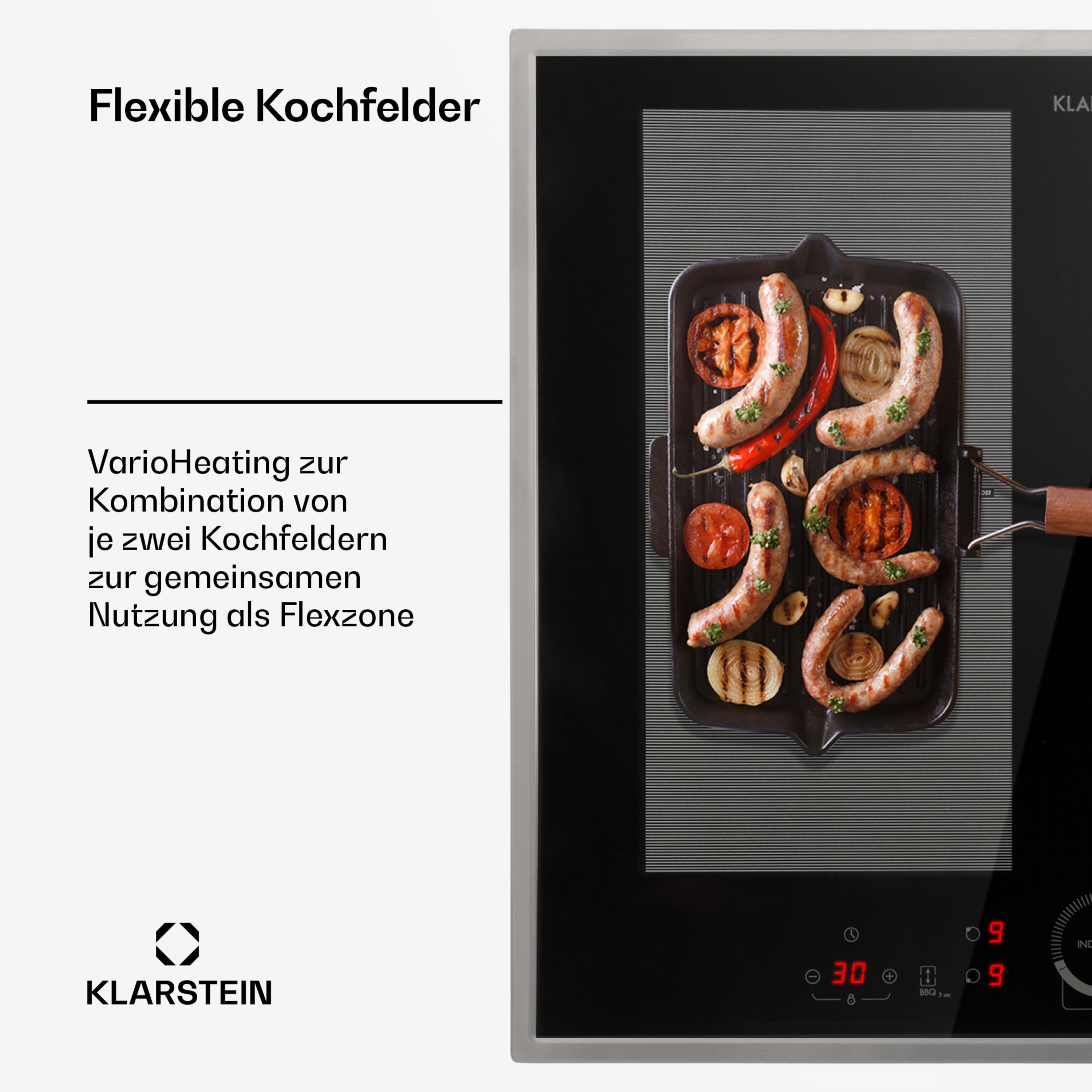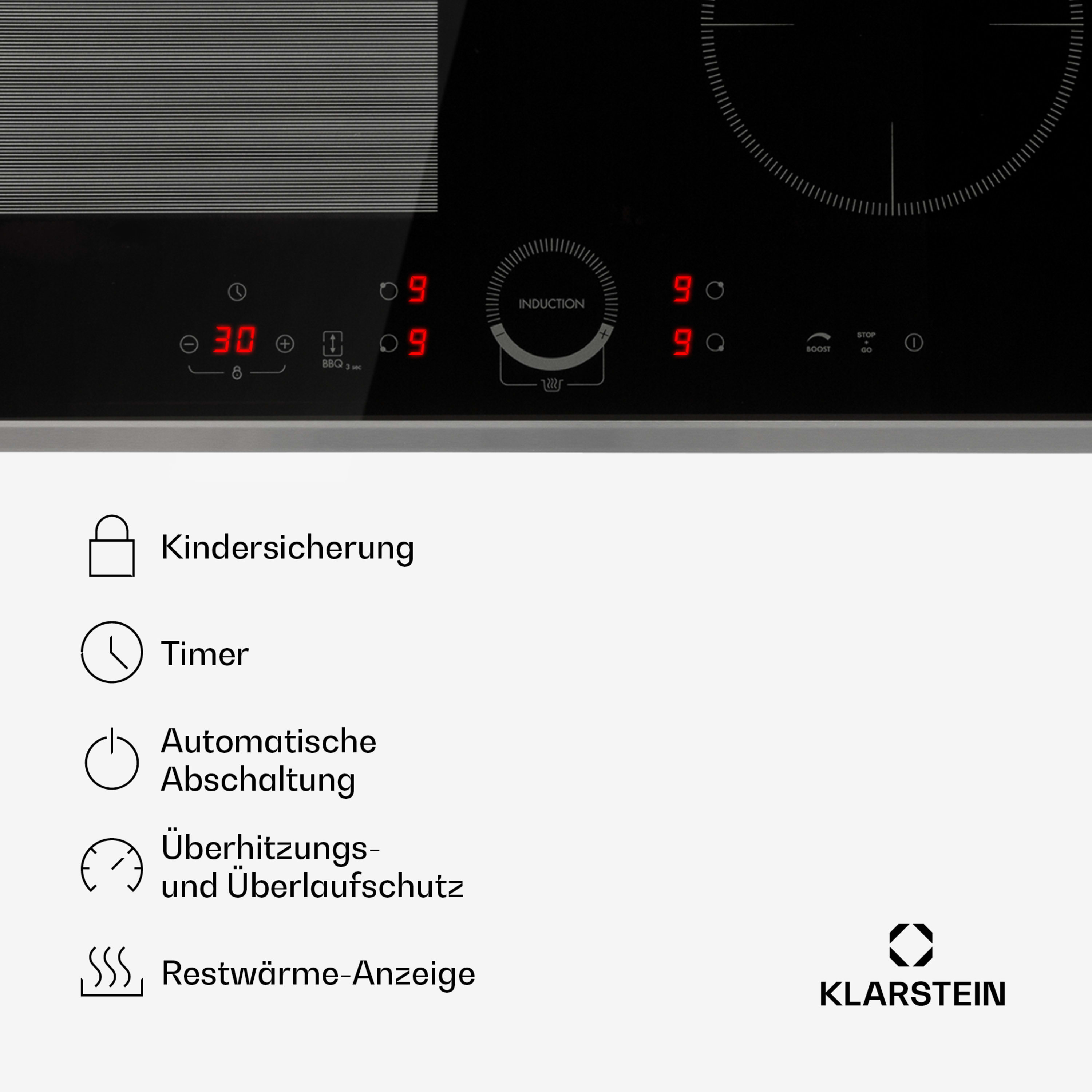 Februar + Juli 2022: Erfahrungen nach einem Jahr Einsatz ------------------------------------------- Immer noch bekomme ich glänzende Augen, wenn ich gleich an dem Gerät kochen darf... ;-)) Ja, es macht schlicht Spaß. Obwohl das gute Stück täglich in Betrieb ist und auch als Ablage genommen wird - es sind auch noch keine Kratzer drauf. Und auch keine "Dauer"-Verschmutzungen. "Problem", dass die Tasten schwer reagieren: ---------------------------------------------------- Das liegt an den Finger (ja, ehrlich) - einfach kurz anfeuchten (also die Finger) dann klappst auch mit den Tasten. "Problem", dass die Platten sich von alleine ausschalten: ----------------------------------------------------------------- Kann ich nicht nachvollziehen. Ist mir noch nie passiert. Und noch ein Tipp: Kaufen Sie sich eine gute Eisenpfanne für die größere Platte und machen Sie das beste Steak und die besten Bratkartoffeln. GENIAL... Immer noch: Sehr zu empfehlen. ####################################### Februar 2021: Das Paket wurde in einem riesigen Karton geliefert. Durch die Mengen von Füllmaterial war es aber gut geschützt. Das Induktionsfeld selbst befand sich dann noch einmal in einem Karton in dem dann endlich der Produktkarton war.... Also da kann nichts kaputt gehen. Das Induktionsfeld sollte ein Ceranfeld ersetzen - eine Öffnung in den von Klarstein angegebenen Maßen von 560 x 490 war vorhanden. Das ist ein übliches Maß für solche Felder. NUR: Klarstein hat vergessen, dass die Schrauben des Bodens auch noch an jeder Seite vorstehen und die Klammern auch noch Platz brauchen. Es wird zwar beschrieben, dass rundrum noch je mind. 3mm Platz sein sollen - nur die sind nicht eingezeichnet. Und damit muss man die vorhandene Öffnung mühsam vergrößern. Warum man den Bodendeckel nicht einfach etwas kleiner gemacht hat, weiß wohl nur der Ingenieur - der das Teil NIEMALS eingebaut hat. Ok, wir haben das entsprechende Werkzeug. Aber der Normalheimwerker dürfte überfordert sein. Das Anschlußkabel kommt hinten mittig (!) in (!) der Arbeitsplatte raus. Also man muss die Arbeitsplatte unten so aufschnitzen, dass das Kabel nach unten kommen kann. Wer hat sich denn das ausgedacht???? Das der Einbau so frickelig ist, ist einfach schade - denn das Induktionsfeld selbst ist klasse. Es sieht richtig cool aus und die Bedienung ist selbsterklärend. Die Lautstärke der Lüfter ist ok, die "ich nehme mal gerade den Topf runter"-Funktion sehr gut gelöst. Und die Boost-Funktion gibt so richtig Speed unter dem Topf. Aber bitte nie bei Pfannen zum Aufheizen nehmen - die gehen schneller kaputt als man denkt. Pfannen erst mit 3 anheizen - geben Sie dem Material Zeit, sich der Hitze anzupassen. Stellt man z.B. an 2 Platten die Boost-Funktion ein, dann laufen die Lüfter unter Volllast mit entsprechender Lärmkulisse. Es kommt dabei richtig heiße Luft aus dem Lüftungsschlitz (siehe Einbauanleitung). Ich habe die Temperatur dabei nicht gemessen - aber das Empfinden sagte mir, doch nur 1x Boost zu benutzen. Und gefühlt ist das mit dem Boost auch nicht so richtig sinnvoll. Bei den niedrigeren Heizstufen wird getaktet - also nicht einfach das Magnetfeld reduziert, sondern mit voller Energie gepulst. Das ist technisch eine gute und auch übliche Lösung, denn es kommt dann das volle Magnetfeld im Topf an. Man hört zwar das leichte Klicken der mechanischen Relais - aber das ist ok. Bei teureren Geräten ist das ähnlich - nur man hört das Klicken nicht, da oft elektronische Relais eingebaut sind. Warum es hier Rezensionen gibt, die das als Nachteil werten, kann ich nicht nachvollziehen. Das Sliderrad ist ok und praktisch - wenn auch ungewöhnlich. Aber man kann damit gut die 9 Stufen anwählen. Die Sensortasten funktionieren super. Falls nicht: einfach den Finger kurz anfeuchten. Beim Reinigen geht in der Regel die Verriegelung der Tasten an (Lo für Locked). Hier gibt es Rezensionen, bei die Autor:innen nicht in der Lage sind, das Handbuch zu lesen. Deshalb: Entriegeln indem man je 1 Finger links und rechts neben Lo auf die Symbole legt und etwas wartet. Und wieder auf.... Wir reinigen übrigens recht simpel: auf die kalte Glasfläche einen Schuß Spülmittel, mit Spülbürste verteilen, kurz einwirken lassen und mit dem Spüllappen abwischen. Danach mit dem Geschirrtuch drüber wischen und fertig. Diese ganzen Ceranreiniger sind einfach nur "Müll" und Umweltverschmutzung. Noch ein Tipp: Einige Pfannen und Töpfe hinterlassen bei starker Erhitzung manchmal einen grauen Schleier auf dem Glasfeld. Gerade, wenn die Pfannen die ersten Male diese Power zu spüren bekommen. Diese "blinde" Schicht geht nicht unbedingt mit normaler Reinigung ab. Dazu einfach (jetzt doch) CERAN-Reiniger nehmen, abreiben und alles ist wieder gut. Und die Eisenpfannen? Perfekt für Induktion - aber bitte nur langsam aufheizen. Erst mit ca. 3 anheizen und dann höher stellen. Die Pfannen sind fast sofort heiß. In der Regel reicht max. die Einstellung 6-7 (von 9) um Steaks gut anzubraten. Ich bin auf jeden Fall begeistert von dem Feld. Und nicht zuletzt sieht das Teil einfach durch den Glasrand und die rechteckigen Kochflächen richtig cool aus. Der Preis selbst ist echt ein Knaller - zumindest bis zum 22.02.21... Eigentlich wäre das Feld gut für 5 Sterne - aber die Probleme beim Einbau wegen echter Konstruktionsfehler gibt es nur 4 Sterne. Aber wie auch immer: ich würde es wieder kaufen, weil das Induktionsfeld durch Optik und Funktion überzeugt.