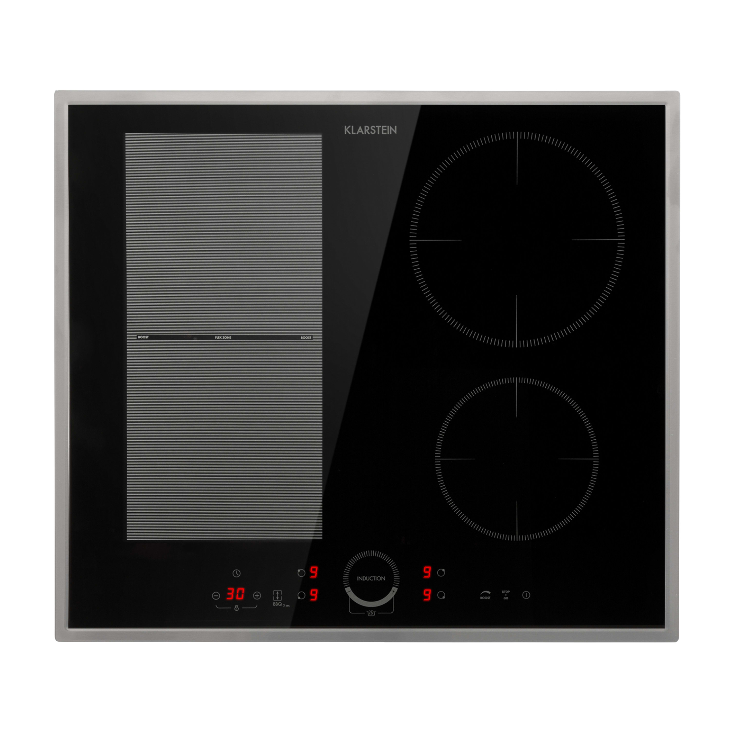 La plaque de cuisson encastrée Klarstein Delicatessa 60 Hybrid Prime offre quatre zones de cuisson pour une puissance totale de 7000 watts répartie en zones de cuisson de 2 x 2000 watts et 2 x 1500 watts pour cuire le contenu de vos casseroles et poêles aux heures de pointe. Les deux zones de cuisson de gauche se combinent pour former une zone flexible grâce à VarioHeating : avec le système de reconnaissance des casseroles, elle s'adapte à la taille de vos casseroles ou poêles avec une flexibilité maximale et vous permet ainsi d'utiliser de grands ustensiles de cuisson qui ne tiennent pas sur une seule plaque. De cette façon, la Delicatessa 60 Hybrid Prime ne consomme que l'énergie nécessaire et permet d'utiliser presque toutes les tailles de casseroles ou de poêles. Toutes les zones se règlent séparément et possèdent la fonction ThermoBoost, qui augmente la puissance pour un chauffage rapide jusqu'à 2800 watts. La table de cuisson vitrocéramique Klarstein Delicatessa 60 Hybrid Prime est facile à utiliser avec son panneau tactile SenseControl avec curseur tactile Touch to slide pour le réglage de la puissance et son écran numérique. Aucun bouton ni commande ne brise la ligne de votre cuisine intégrée. En plus de la puissance, vous pouvez programmer une minuterie jusqu'à 99 minutes pour chaque zone de cuisson et éteindre la table de cuisson une fois le temps écoulé ou émettre un signal sonore.