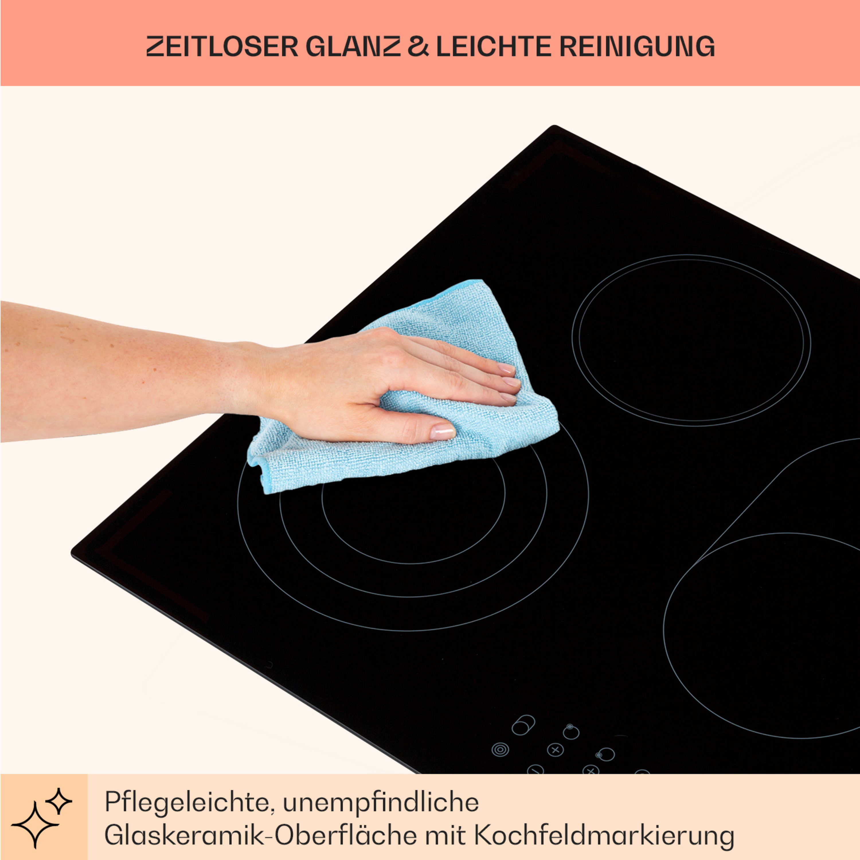 La table de cuisson vitrocéramique Victoria 5 de Klarstein séduit par sa surface en vitrocéramique facile à entretenir qui s'intègre facilement dans n'importe quelle ligne de cuisine - classique ou moderne. Le matériel nécessaire pour l'encastrement dans le plan de travail se trouve directement dans la livraison.