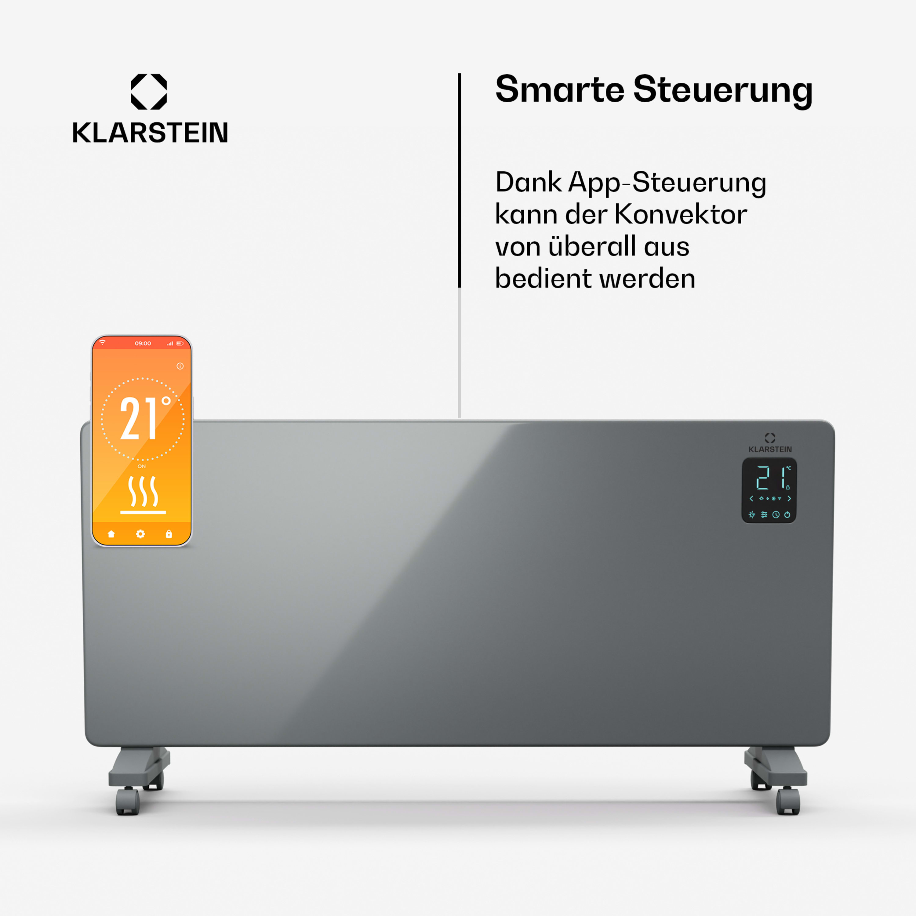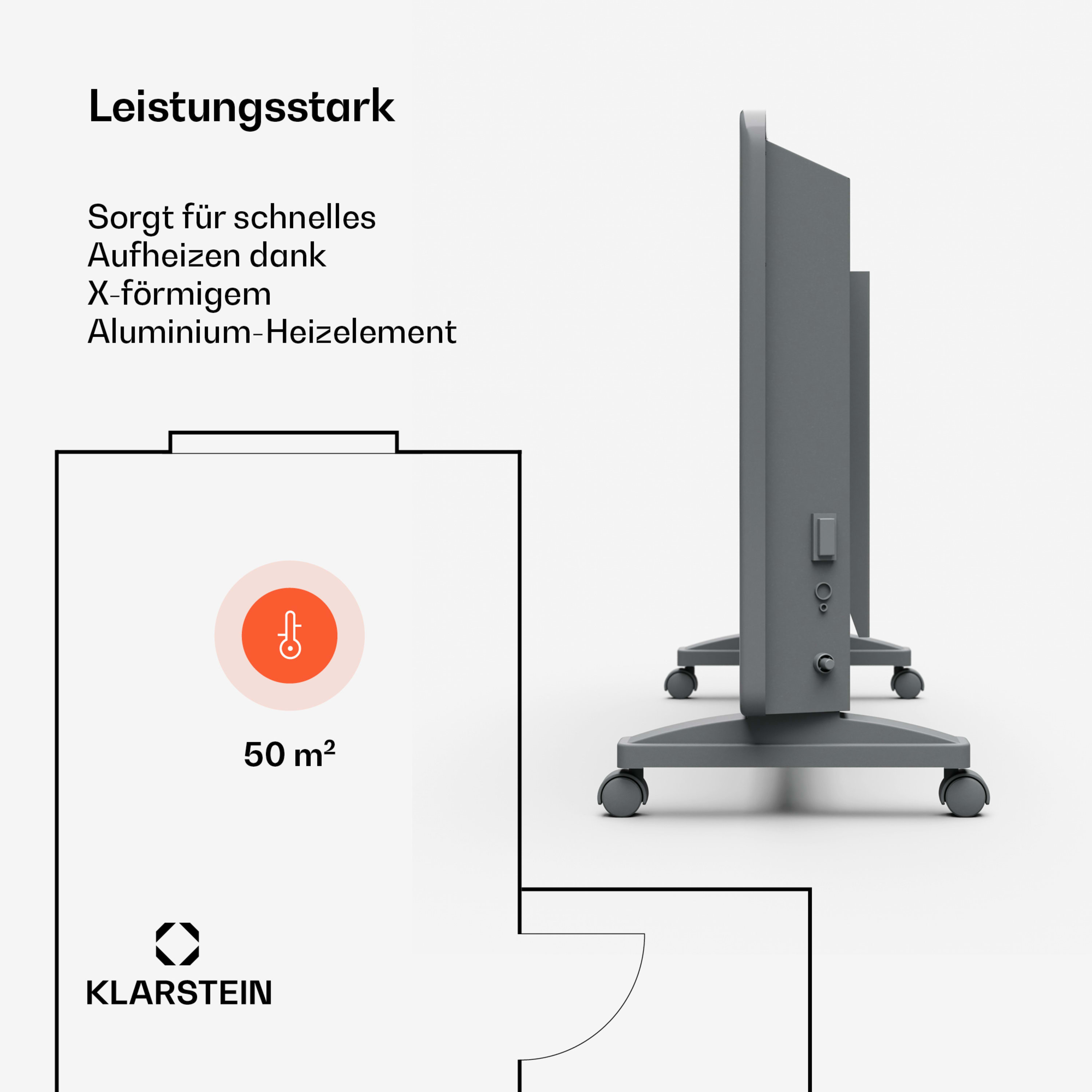 Puissant et économe en énergie : Avec sa puissance de 2500 W, le convecteur assure une chaleur rapide et efficace sans émissions de CO2