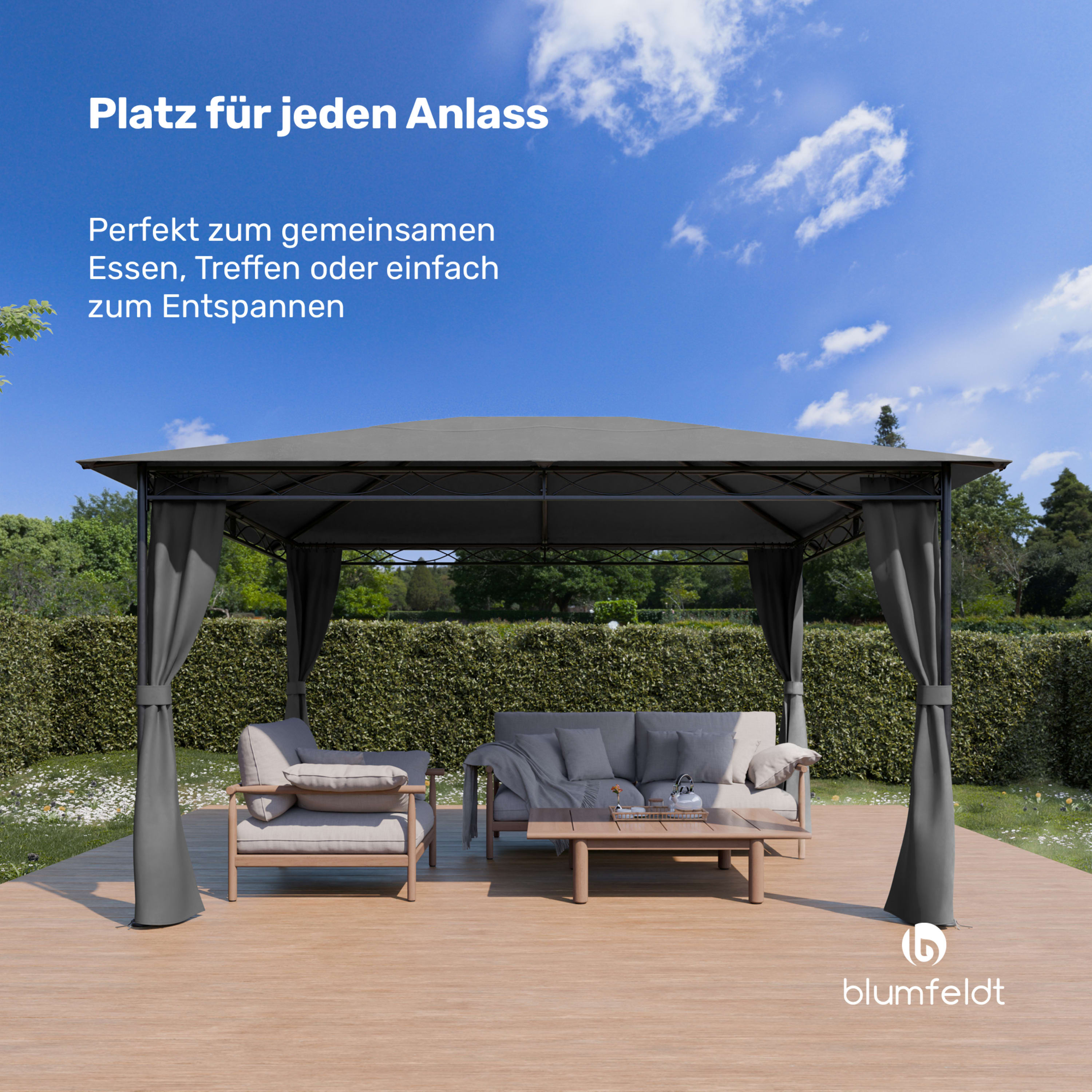 Avec une structure métallique robuste et inoxydable et une conception solide qui défie les éléments, la pergola Mondo de Blumfeldt est le cadre idéal pour vos repas, vos réunions et vos moments de détente.
