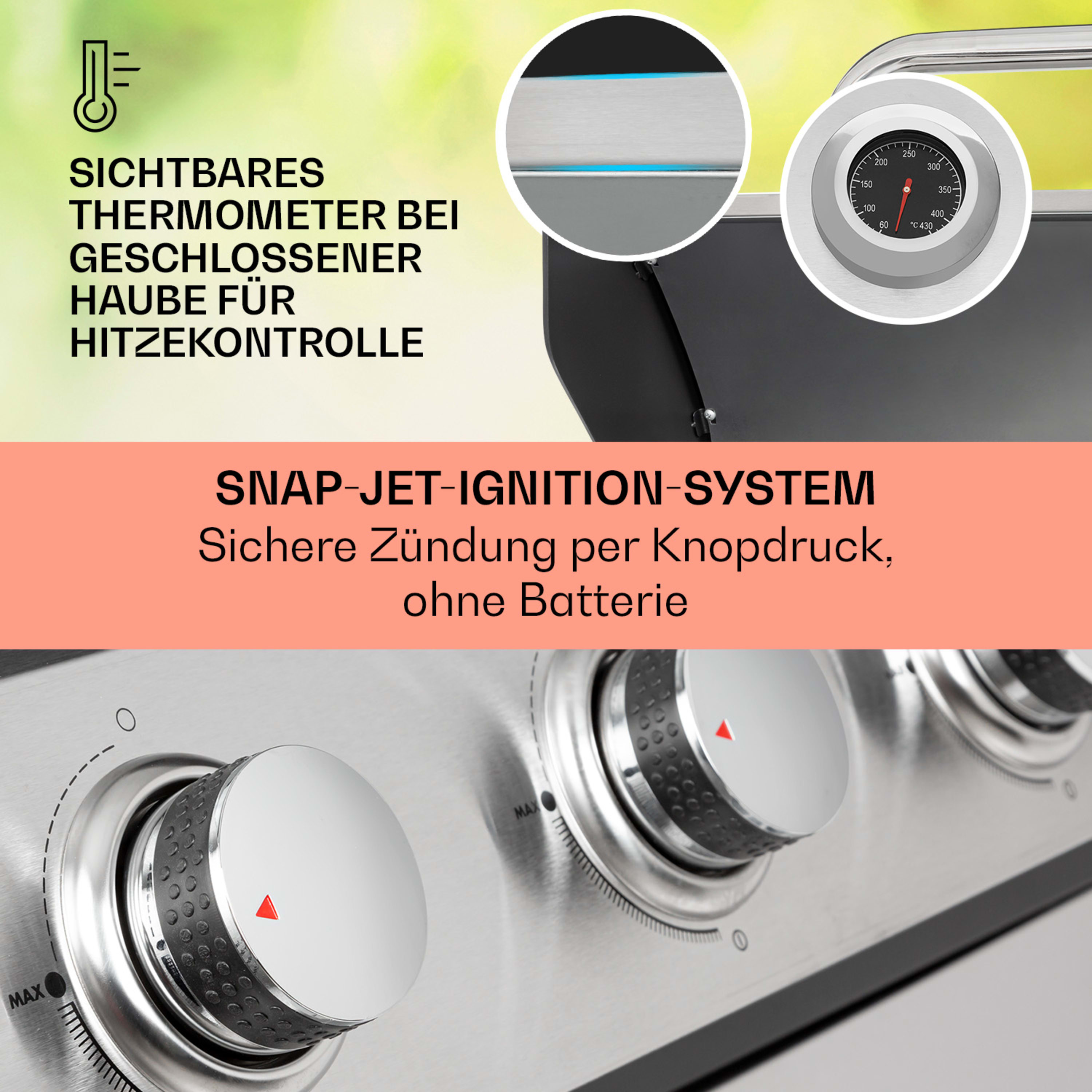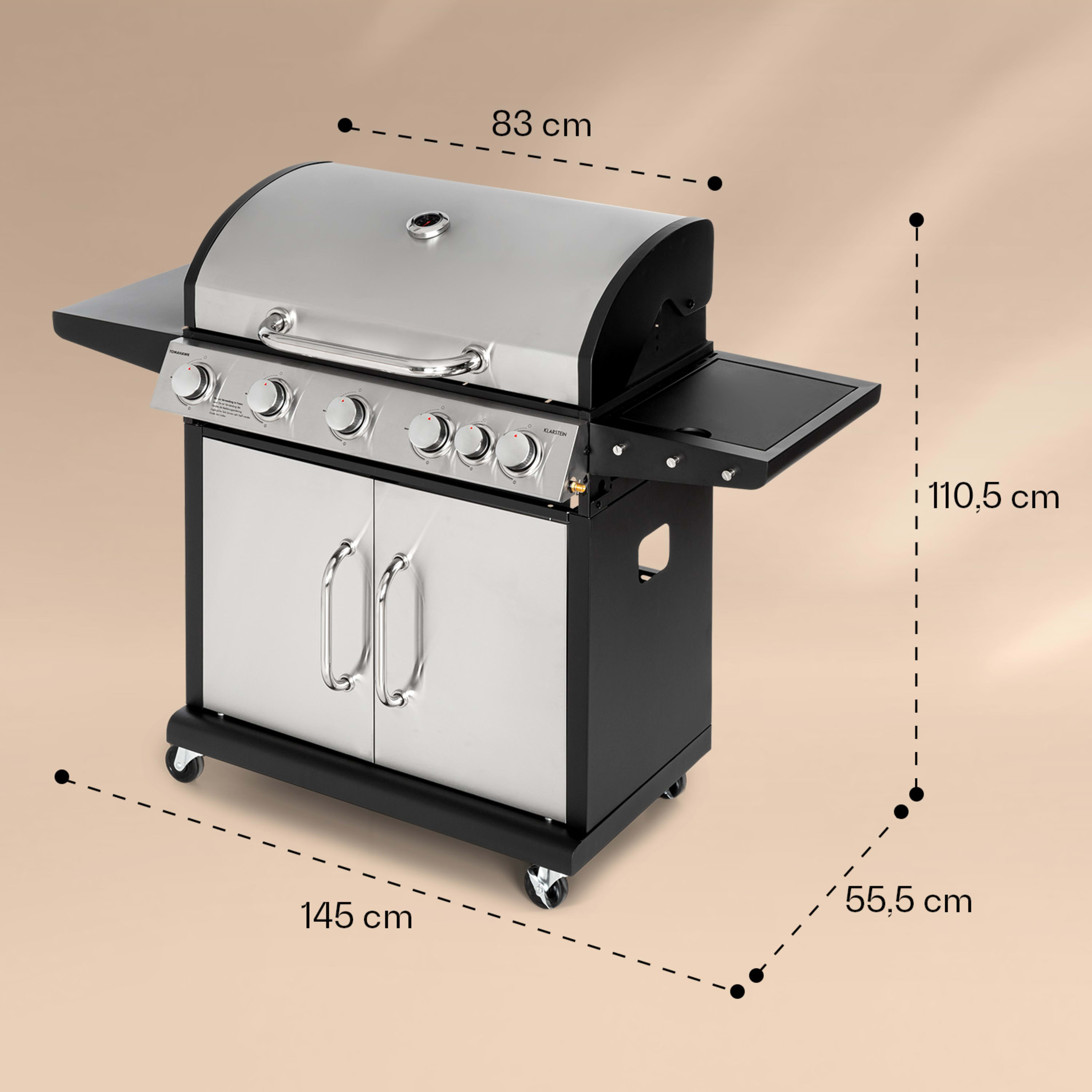 Che la stagione dei barbecue abbia inizio! La griglia a gas Tomahawk di Klarstein con 5 bruciatori e sideburner assicura barbecue di prima qualità. Con la sua ampia superficie per grigliare, l'elevata potenza termica e il design raffinato, la preparazione di prelibatezze di ogni tipo diventa un vero piacere.