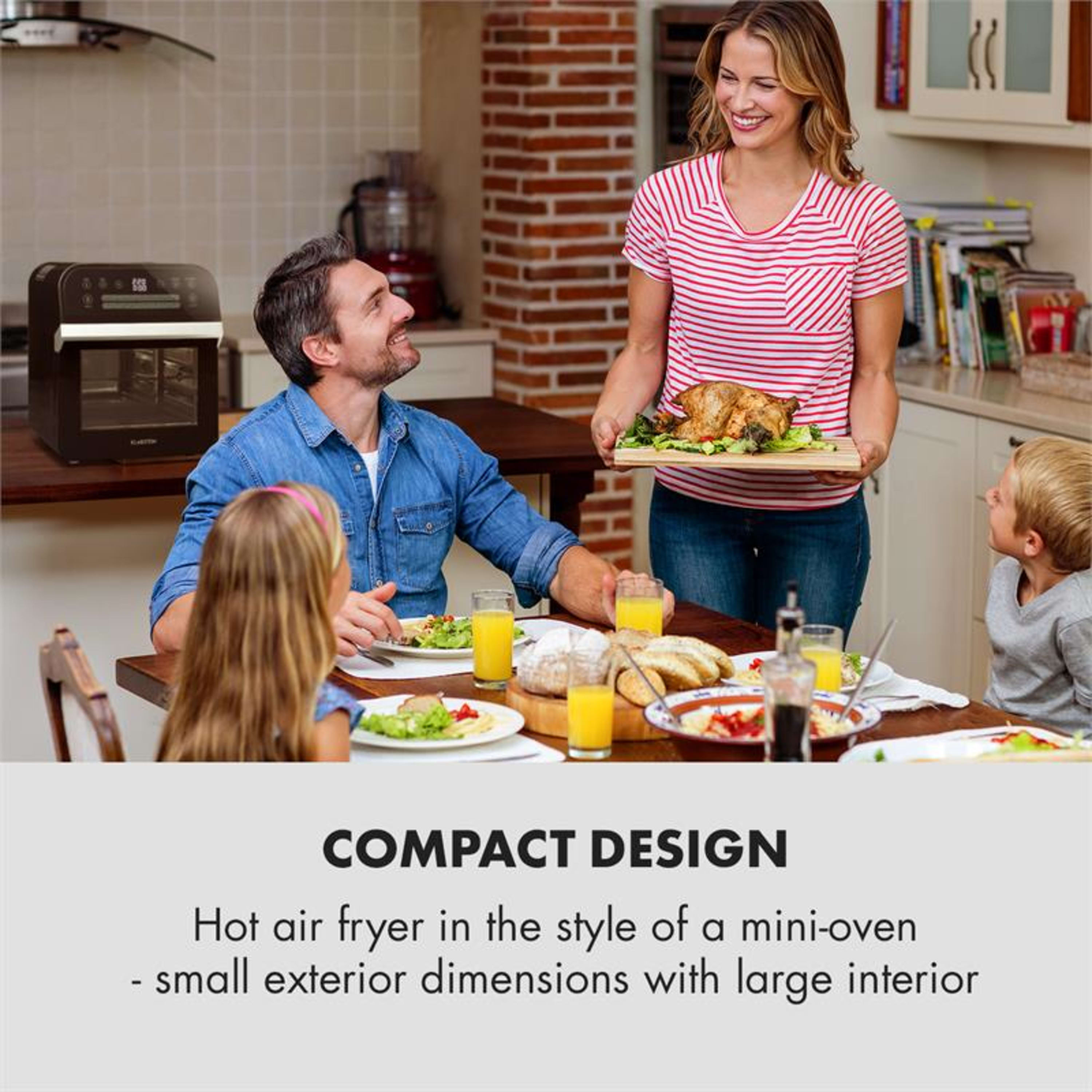 Design compatto: friggitrice ad aria calda nello stile di un mini forno - piccole dimensioni esterne con grande spazio interno