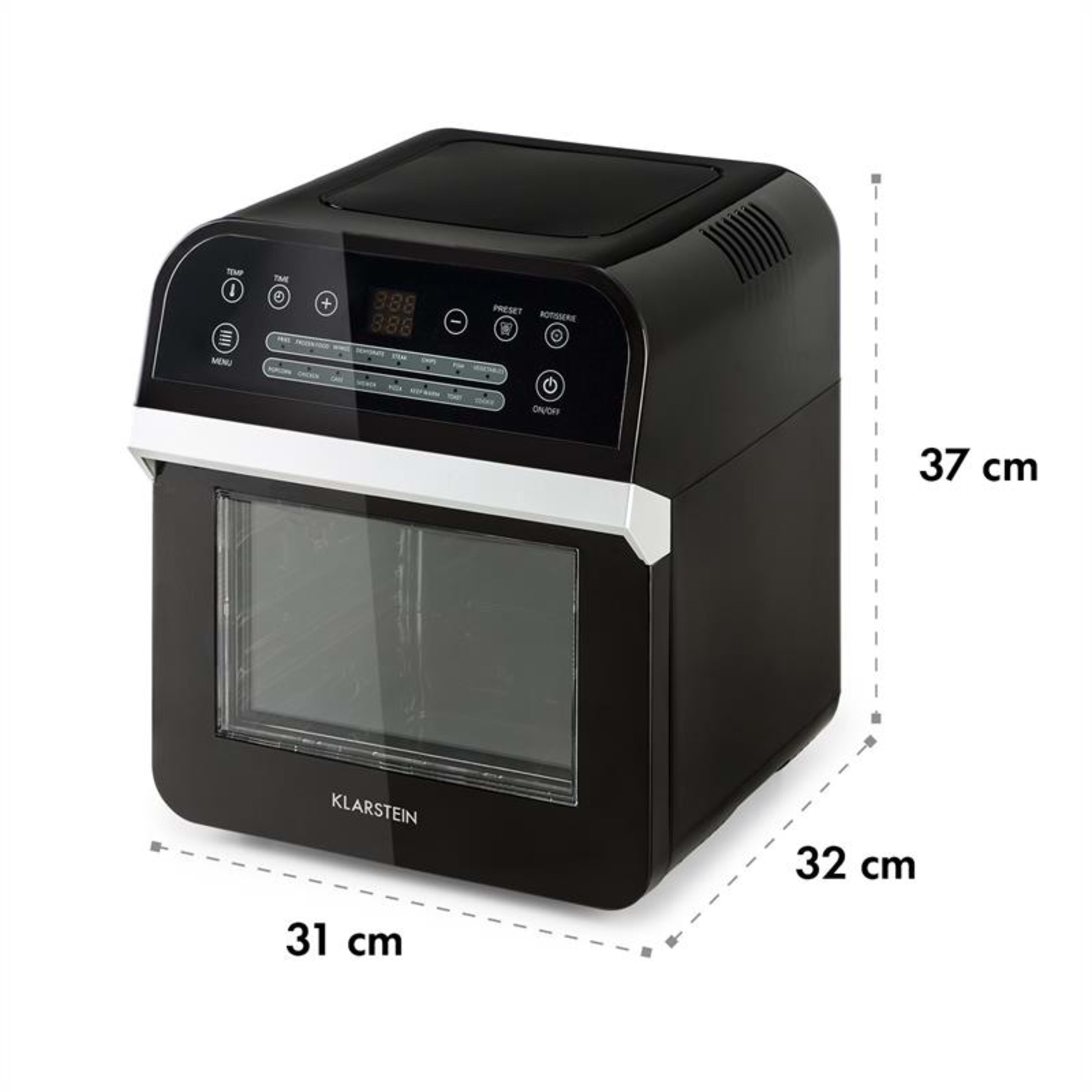 Die Medien konnten nicht geladen werden. Kochen und Lexl versteht sich nicht, und mein Backofen ist nicht der jüngste (ca. 30 Minuten bis 220 Grad), habe daher eine alternative gesucht. Ich war lange zwischen dem Median Shop Gerät für € 199.- und diesem hier hin und her gerissen. Aber die 12 Liter und einige Kundeninformation haben mich zum Klarstein gebracht. Bestellt am Mittwoch, Freitag zugestellt (Österreich). An meinen Bildern sieht man das ich eine Freude damit hatte. TK-Pizza - > 1a (wobei bei der hälfte der Zeit es nicht schadet eine Drehung zu machen) Toast - > 4 Minuten hell, 5 Minuten knusprig und genial Baugette - > rein geben und 1 Minute abziehen welche angegeben sind Gebackene Champignons TK - > 15 Minuten mit 180 Grad in dem runden Korb - > Best ever! Fischstäbchen - > in Arbeit Kassspatzln - > Zwiebel und Speck in der Pfanne anrösten, Spatzln kochen (fertig oder frisch), passende Aufllaufform und alles rein --- Bissl Spatzlkas oben drauf - > 10 Minuten bei 200 Grad (Mags Knusprig) - > PERFEKT! Mehr hab ich nun nicht gemacht, ein Kochbuch dazu wäre super gewesen. Aber testen macht auch Spaß. Auf alle Fälle "KAUFEMPFEHLUNG" Und ich habe das Teil leider nicht zum testen gehabt, sonder Bares für Wahres gezahlt ;) Lg, Ich