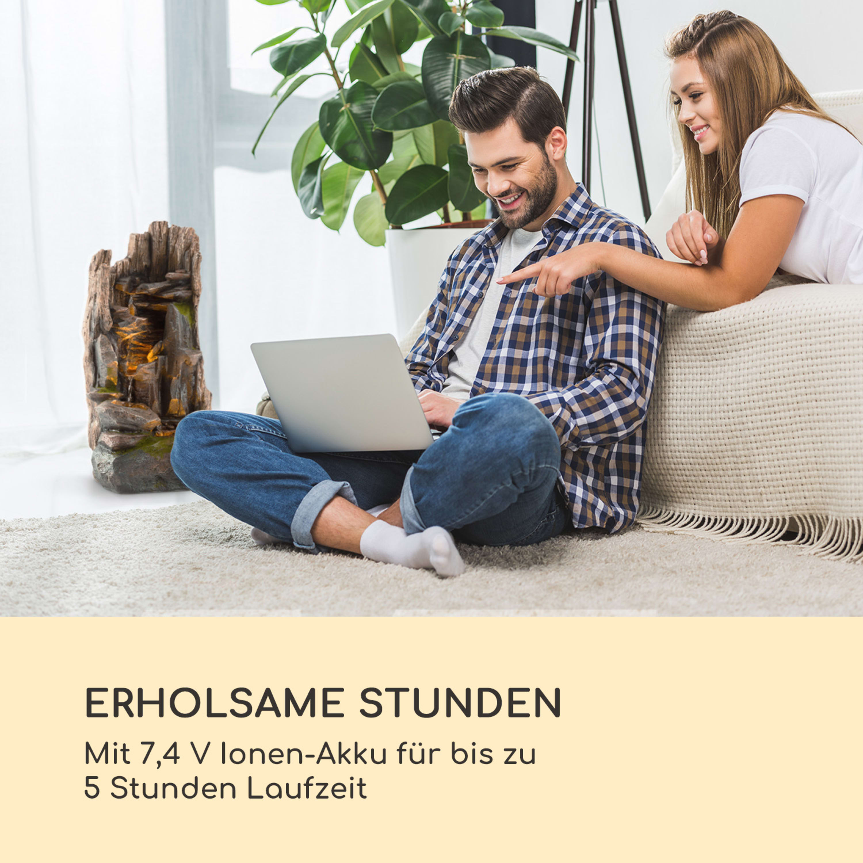 Grazie al peso ridotto e al materiale resistente potrai montare questa bella fontana in giardino, sul terrazzo o in ambienti interni, persino in inverno. Funziona anche con la batteria agli ioni di litio quando il pannello solare non è esposto ai raggi diretti del sole. L'energia dura per alcune ore. Grazie alla pompa potente e al LoopFlow Concept, l'acqua si muove in un circolo costante tramite le cascate.
