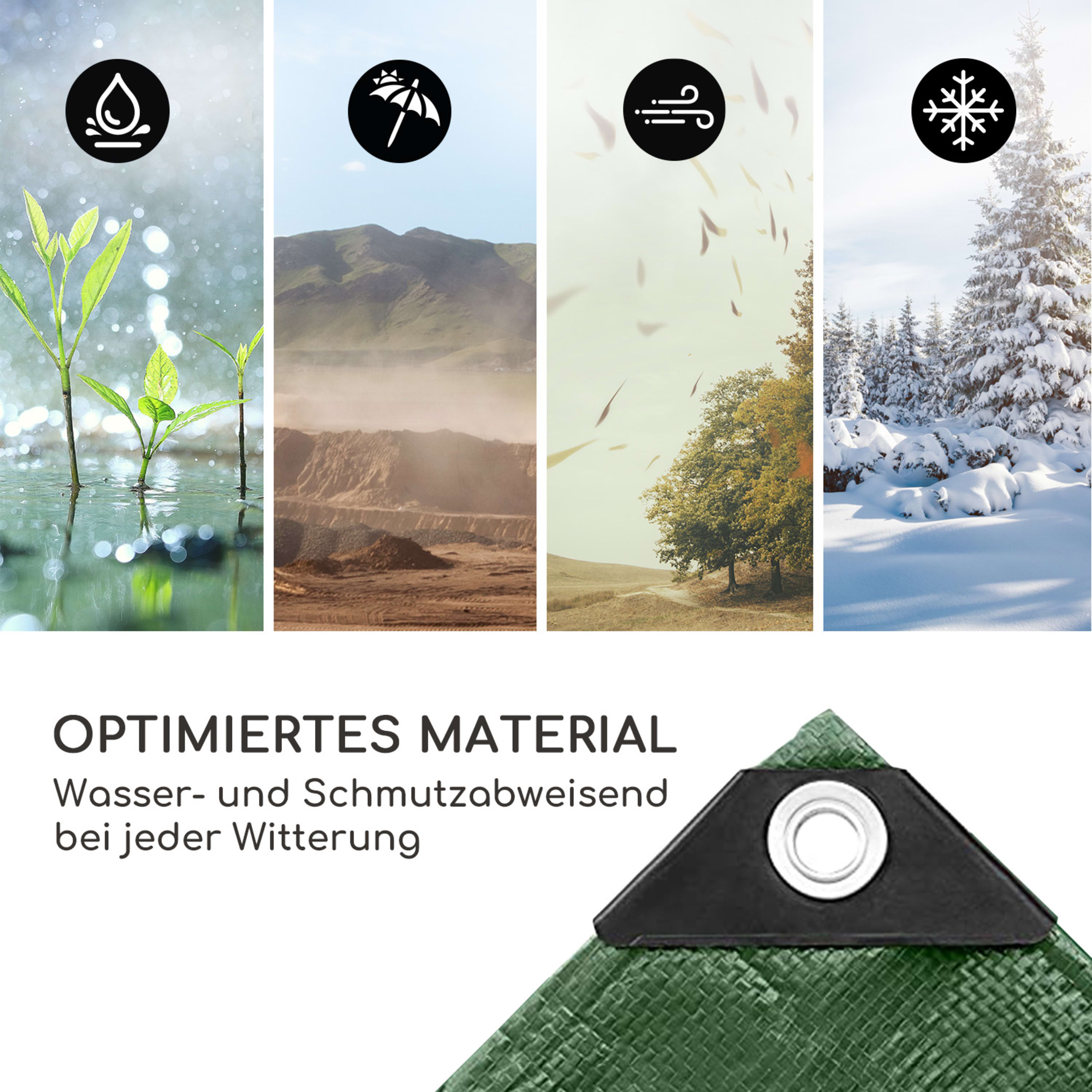 Un tuttofare per aree esterne: il telone in tessuto blumfeldt Aegis in robusto tessuto sintetico può essere utilizzato ovunque sia necessario. Sia per il giardinaggio, come copertura per legna da ardere, mobili da giardino, moto e sabbiere o per il campeggio come telo base impermeabile per tenda. Gli angoli rinforzati e la breve distanza tra i fori assicurano un'alta capacità di carico. Il materiale resistente è repellente allo sporco, resistente alle intemperie e protegge anche dai raggi del sole. Con il cordino di fissaggio in dotazione, sei pronto a qualsiasi tipo di utilizzo.