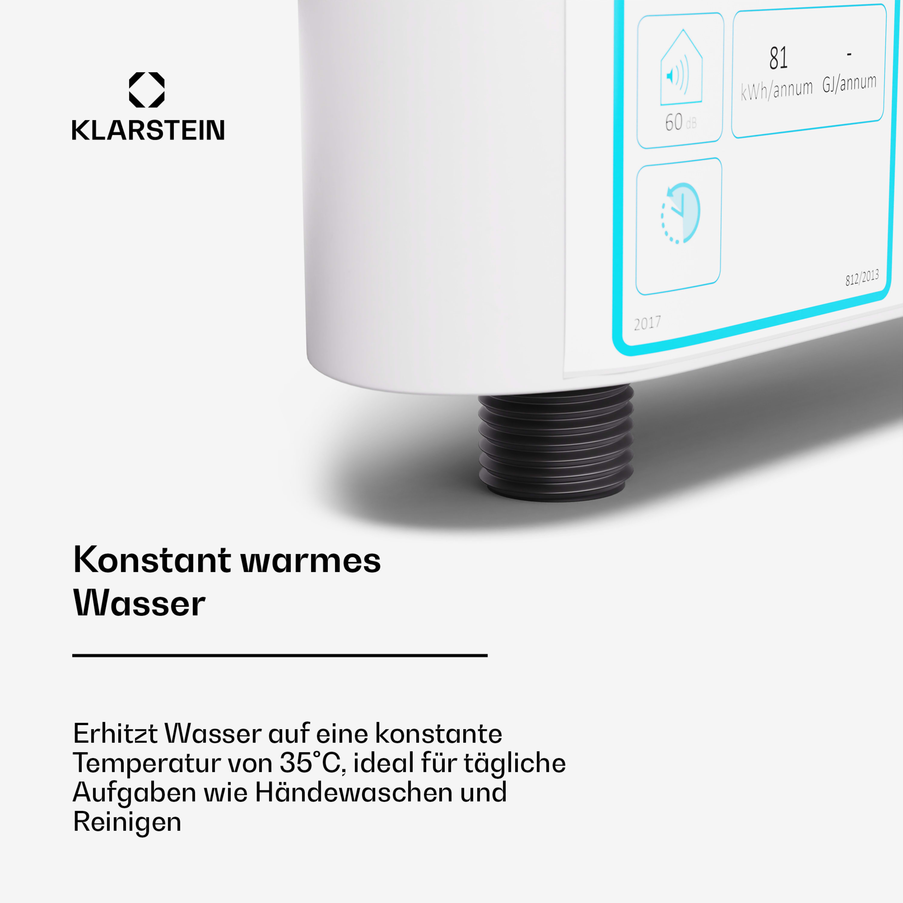 - Temperatura costante: riscalda l'acqua a una temperatura stabile di 35 °C, ideale per le attività quotidiane come il lavaggio delle mani e la pulizia
