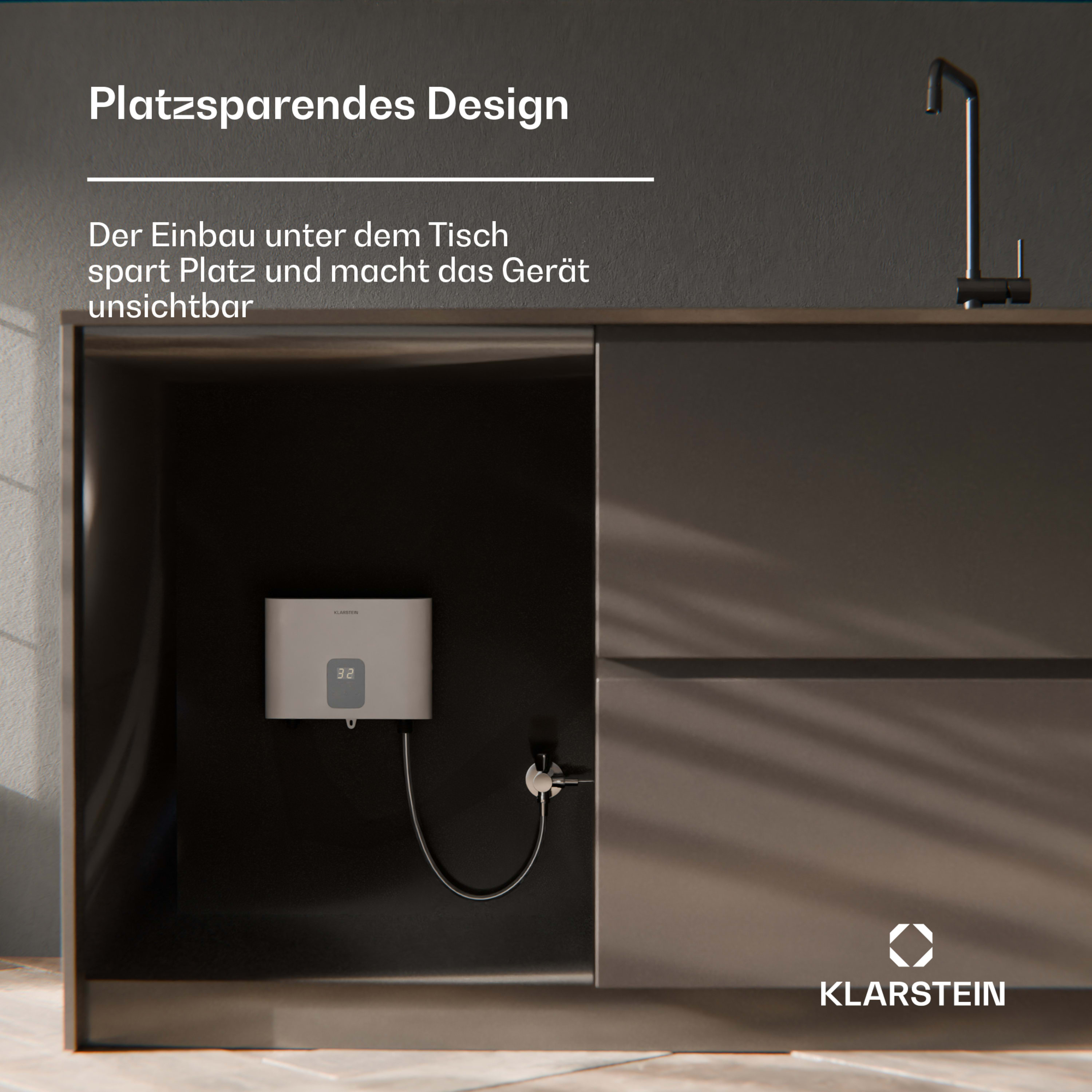 Lo scaldacqua elettrico istantaneo Blaze Flow di Klarstein è una soluzione compatta ed efficiente per fornire acqua calda costante. Con un elemento riscaldante in alluminio fuso, questo scaldabagno sottopiano offre un riscaldamento rapido e affidabile. Con una potenza di 5,5 kW e una tensione di 230 V, è ideale per l'uso domestico dove lo spazio è limitato ma è necessaria una fornitura affidabile di acqua calda. Il dispositivo riscalda l'acqua a una temperatura costante di 35 °C, rendendola perfetta per l'uso quotidiano, come il lavaggio delle mani e le operazioni di pulizia. Grazie al suo design sottile e al peso ridotto, può essere facilmente installato sotto i lavelli, risparmiando spazio prezioso in cucina o in bagno. Inoltre, il scaldacqua elettrico Blaze Flow di Klarstein non necessita di batterie, il che semplifica la manutenzione e l'utilizzo. Questo scaldacqua istantaneo è una scelta eccellente per chi cerca una soluzione efficiente dal punto di vista energetico e poco ingombrante per il proprio fabbisogno di acqua calda.