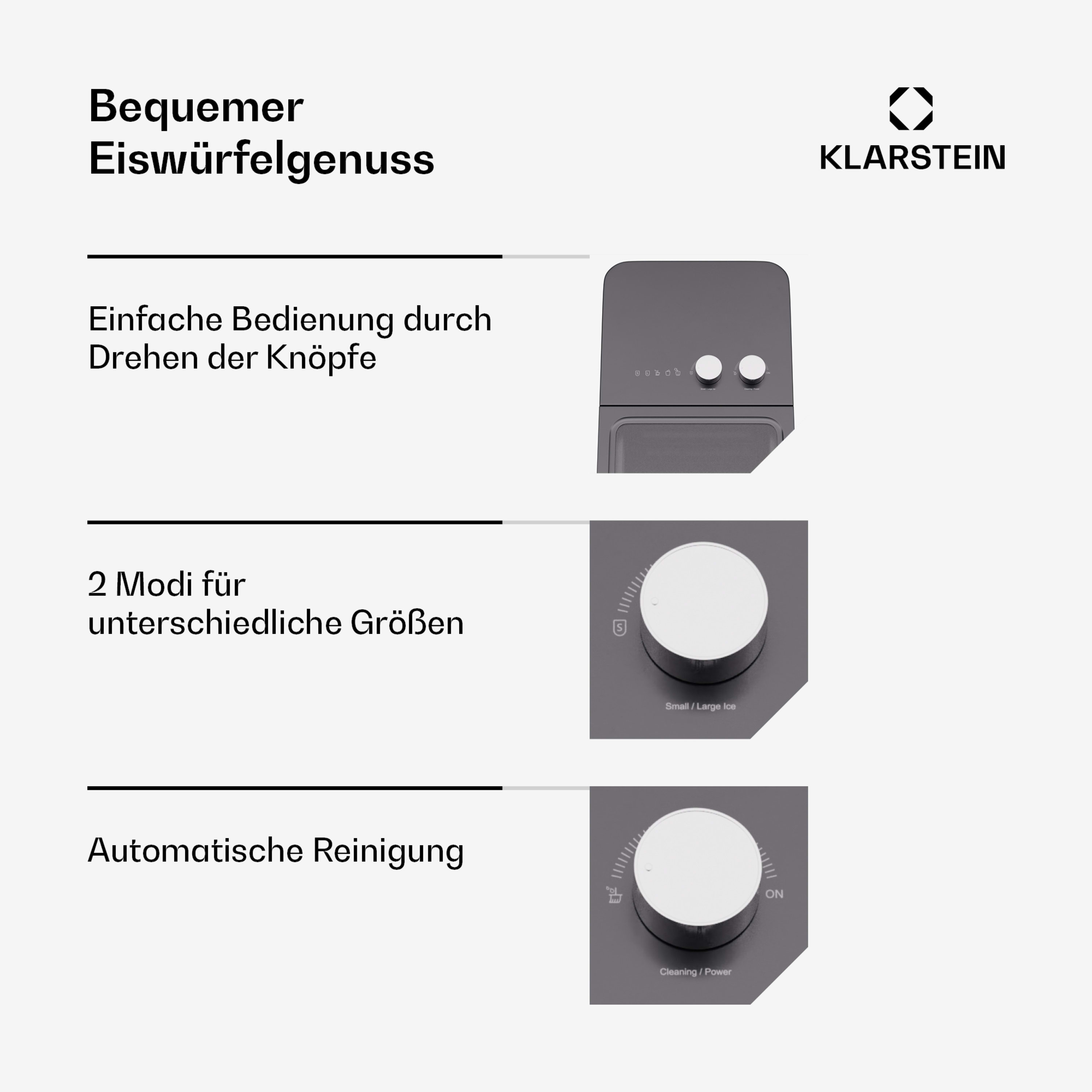 2 modalità per cubetti di ghiaccio grandi e piccoli