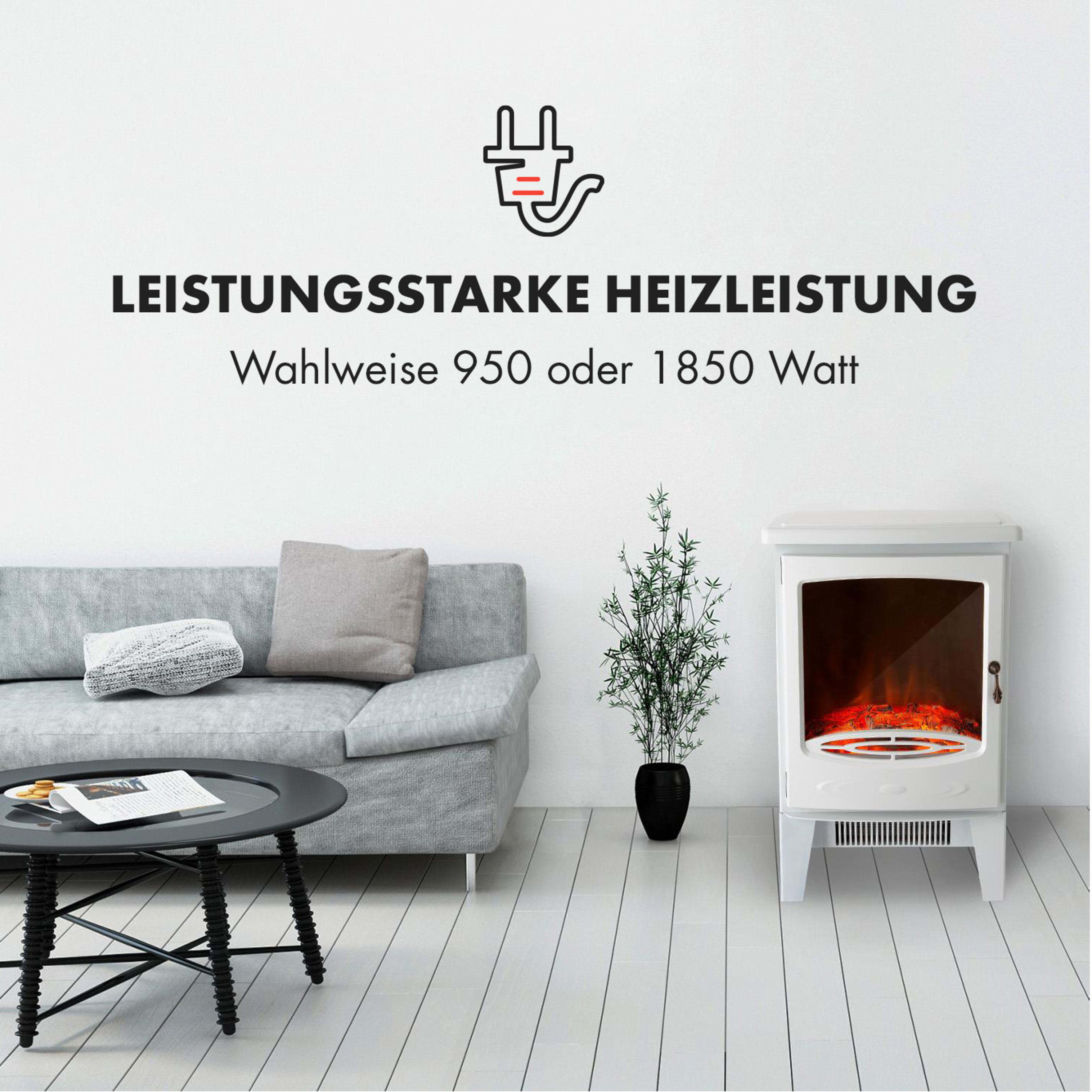 Sehr schönes kompaktes Disign. Das Kaminlicht schafft eine schöne Athmosphäre, wenn es auch direkt betrachtet natürlich nicht echt wirkt. Heizleistung super.