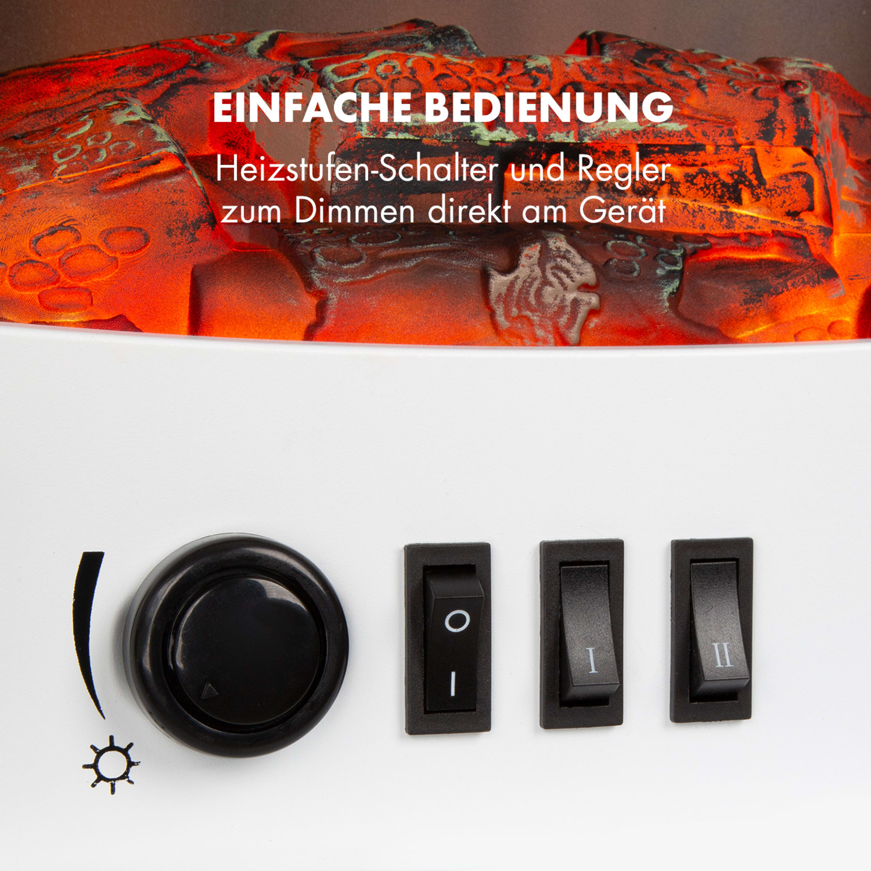 Der Kamin steht bei uns im Jugendzimmer. Flammenbild ist sehr schön und auch die Heizleistung ist sehr gut. Mein Sohn ist begeistert. Der Geräuschpegel bei laufender Heizung ist angenehm. Auch das einschalten der Heizung und des Thermostat ist problemlos. Der Kippschalter und der Drehregler sind nicht sichtbar hinter einer Glastür angebracht. Preis Leistung voll in Ordnung.