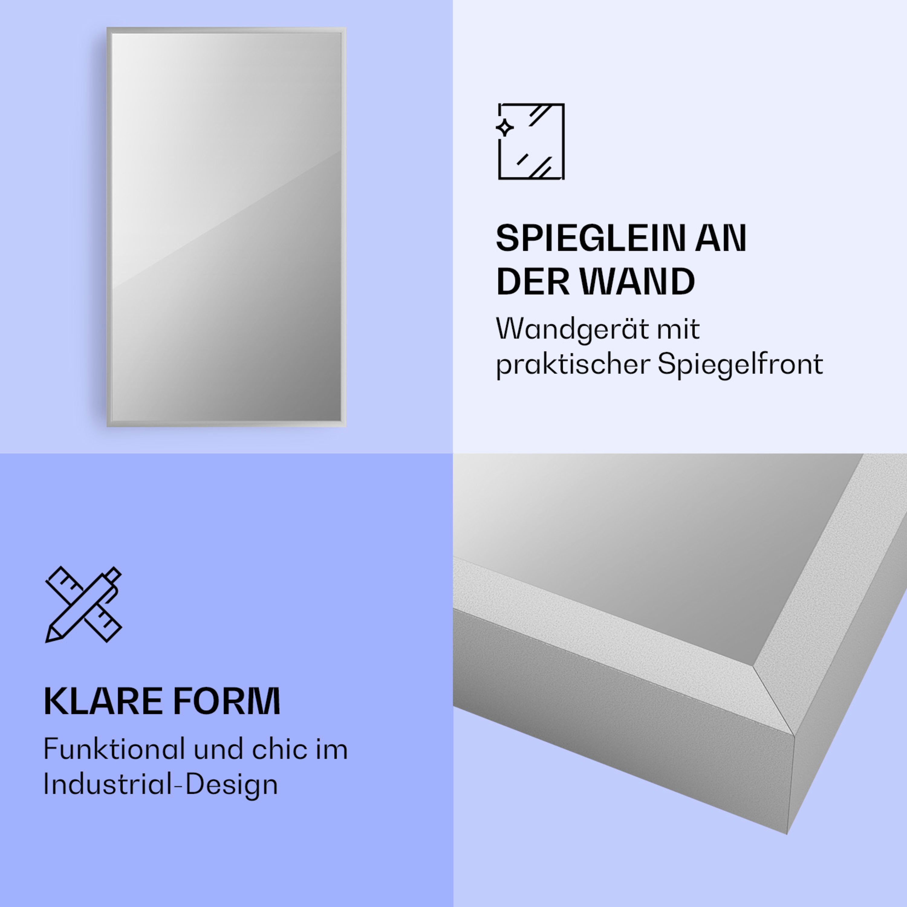 Diese Infrarotheizung löst im Grunde 2 Probleme in einem: Auf beengten Raum einen Spiegel und Heizung unterzubringen.Im Gegensatz zu den anderen Klarstein Infrarot die ich habe sind bei diesem die über die App einstellbaren Optionen etwas reduziert. Schade ist auch, dass man die "Intelligente" Einstellung in der Grundeinrichtung über die kleinen Tasten an der Seite machen muss. Die mitgelieferte Fernbedienung habe ich gar nicht angebunden bekommen. Deren Funktionsweise erschliesst sich mir nicht.Leistungsmässig müsste das Gerät eigentlich mehr Wärme abstrahlen wie die anderen die wir aus der gleichen Gerätegruppe haben. Jedoch ist die Strahlleistung etwas schwächer. Das könnte an der dicken Spiegelscheibe liegen. Anders als die anderen Geräte sind hier auf der Rückseite auch Lüftungsschlitze, man arbeitet also auch ein wenig mit Konvektion. Die Konvektionswirkung ist aber gering.Insgesamt aber wie gesagt vertretbar - besonders das recht kleine Mass war hier notwendig und im Grossen und Ganzen: Ok!