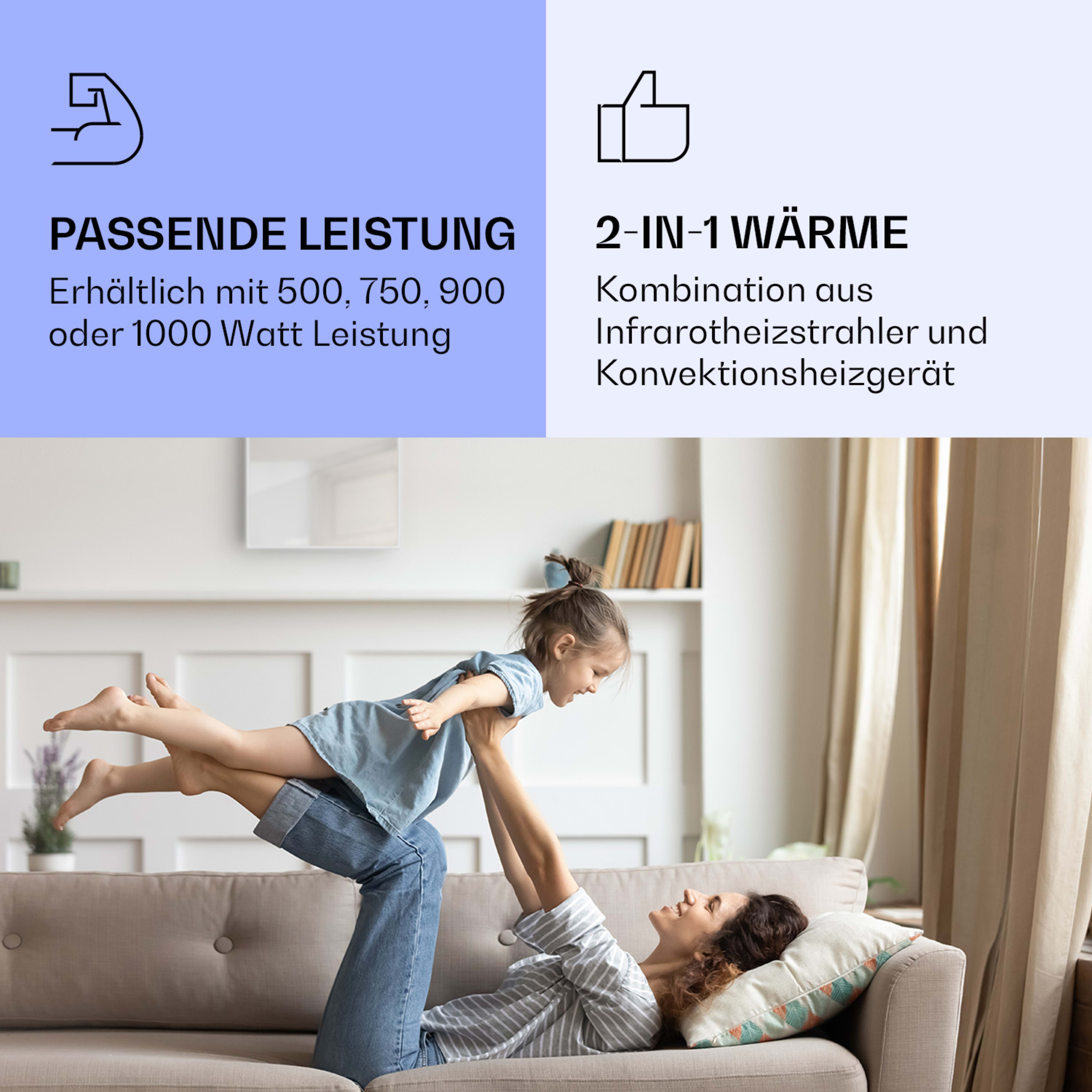 Ich bin sehr zufrieden mit dieser Infrarotheizung. Ich habe sie in meinem Schlafzimmer montiert und sie heizt den Raum sehr schnell auf (ich habe das 1000-Watt-Gerät gekauft). Die Alternative war eine Klimaanlage, aber sie ist sehr laut und macht die Luft trocken. Ich hatte keine Erfahrung mit den Infrarotheizungen und bin überrascht, wie angenehm und natürlich die Infrarotwärme ist. Sie ist der Sonne wirklich ähnlich (was in den Wintermonaten sehr hilfreich ist).Außerdem war die Installation äußerst einfach und es nimmt keinen zusätzlichen Platz ein. Die Temperaturregelung mit meinem Handy ist sehr einfach und sparsam. Es ist meistens aus, wenn ich unterwegs bin, und schalte es ein bisschen ein, bevor ich nach Hause komme. Es heizt den Raum schnell auf. Ich denke daran, den Flurspiegel mit dieser Heizung zu ersetzen. Erstaunliches Produkt!